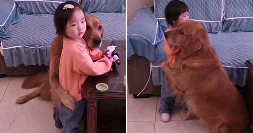2022年04月20日狗狗是人類最好的朋友~大陸徐州的一個家庭養了一隻6歲的金金「哈利」,牠跟3歲左右的小主人感情特別好。有一天小主人調皮做錯事,媽媽氣得訓斥她,小主人忍不住流淚,哈利看到這一幕竟挺身而出,出面阻止媽媽,保護小主人。