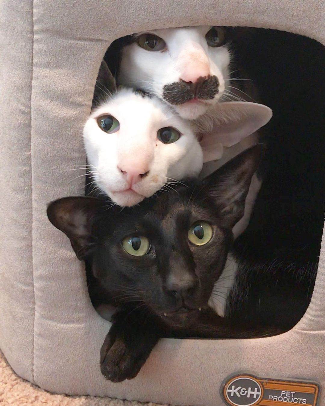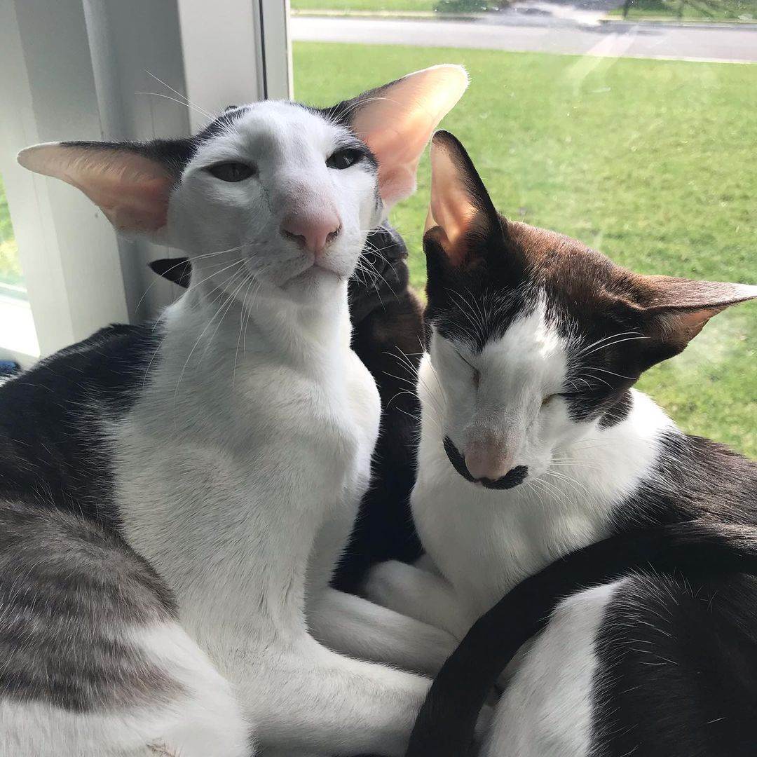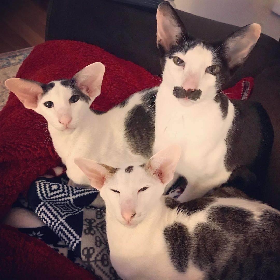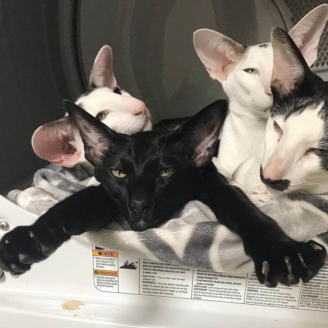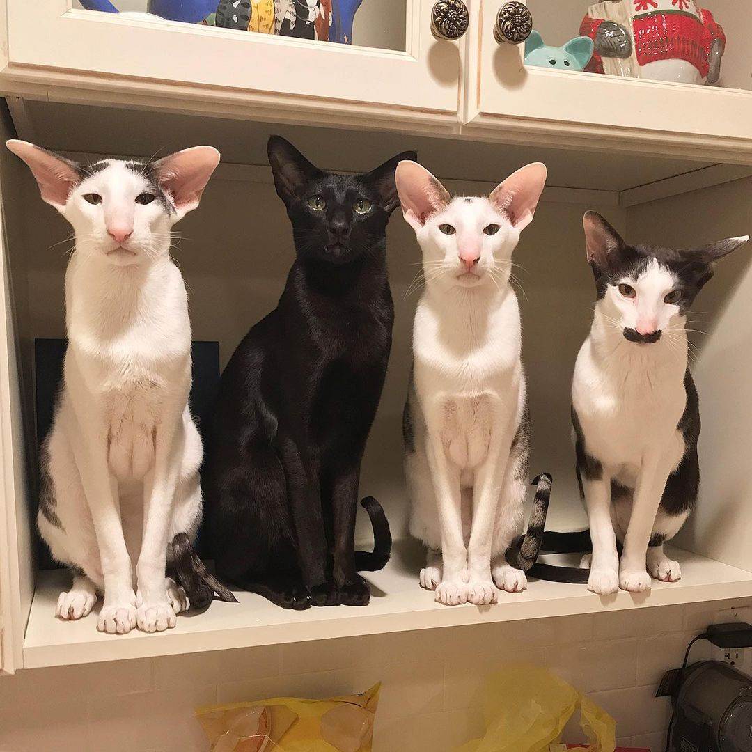 ▼這4隻貓咪的耳朵大大的,就像蝙蝠翅膀一樣,跟多比一模一樣。網友們看到照片後都很驚奇,追問主人這些貓咪到底是什麼品種?主人回答說,這4隻貓咪都是「東方短毛貓」!