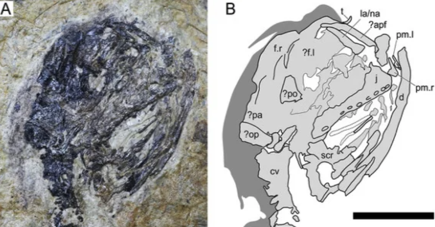▼中華大眼翼龍的屬名來自古希臘語中的「Sino、macro和ops」,意思分別是「中國、大和眼睛」。顧名思義,這種翼龍長著一對又圓又大的眼睛,整張臉有點像青蛙,看起來萌萌的。中華大眼翼龍的模式種名為邦氏中華大眼翼龍(Sinomacrops bondei),模式種名則是為了向生物學家Niels Bonde致敬,他對翼龍的研究對古生物學啟發極大。
