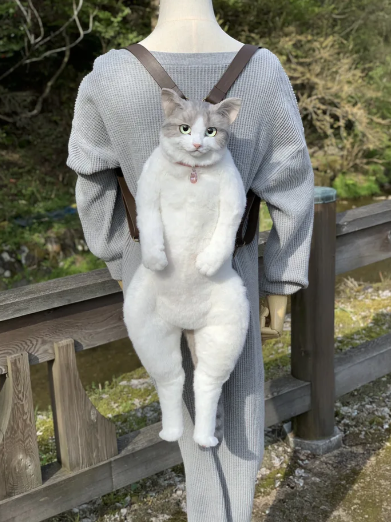這款貓咪後背包使用了78種零件縫製,還原度超級高。將它背出門,或者抱在懷裡當娃娃,都是很好的選擇。如果想養貓咪,又沒有時間照顧,有了這款包包,就像有了一隻寵物一樣,真是太完美啦~