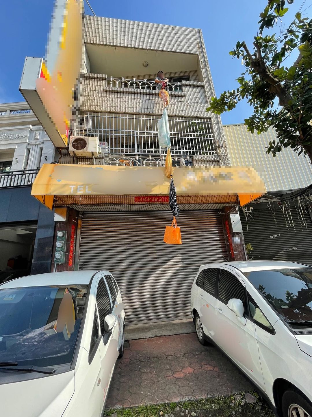 ▼從照片中可以看到,那名顧客站在3樓陽台,手中拿著一條用許多衣物綁成的繩子,最下端則綁著一個橘色的袋子。等外送員將餐點放進袋子裡,她再提上去。