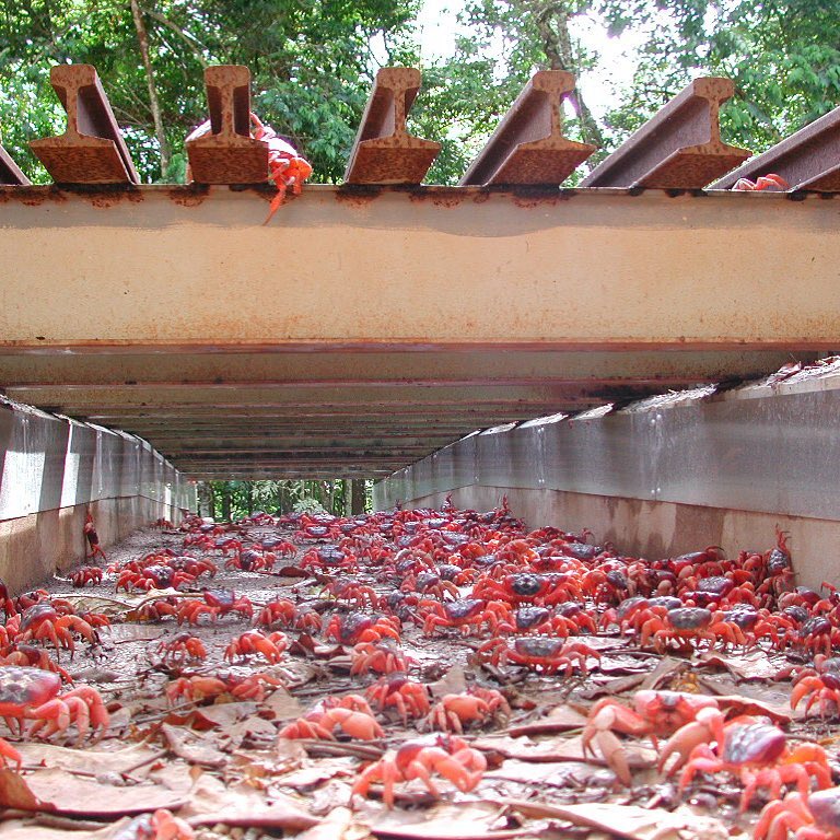 ▼在澳洲的聖誕島,有超過30座「大橋」和各種地下通道,協助紅蟹可以順利抵達海邊進行繁殖。