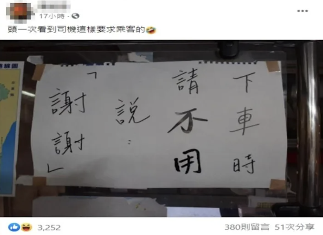 公車司機貼公告「下車不要說謝謝」 內行曝:反被害到