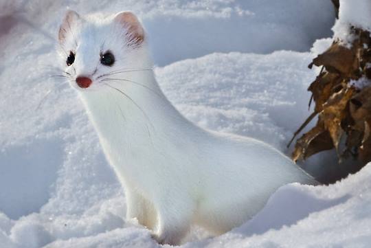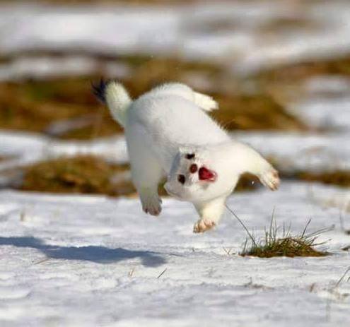 ▼雪鼬的毛髮會隨著季節改變顏色,當夏天時會變成棕色,而當天當然就是白色了,這樣方便牠們躲藏在雪地之中。