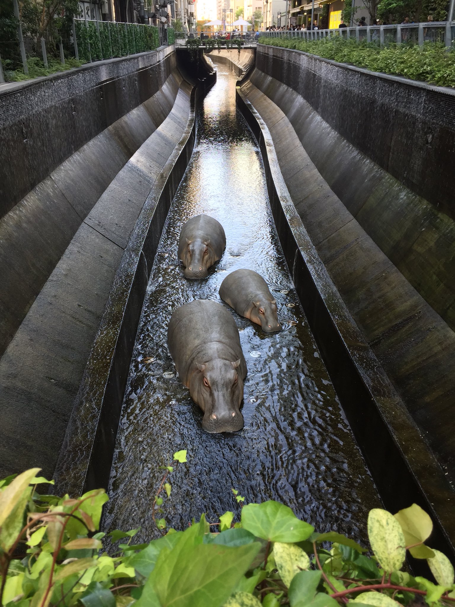 渋谷ストリームの前の川にカバが3匹迷い込んでた pic.twitter.com/2OtFjoh995