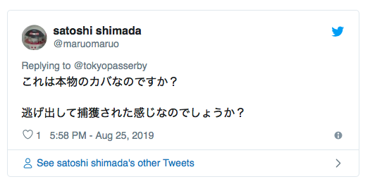 「えっ!?なんで!?」「カバ!?…住んでんの?」って言って写真撮ってる人いっぱいいた。 pic.twitter.com/LdFzQoVYWO