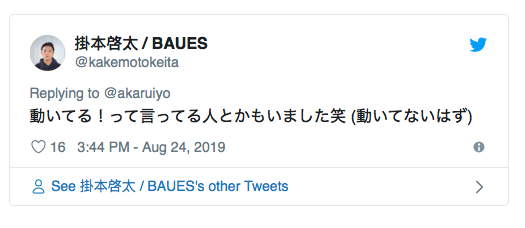 — 掛本啓太 / BAUES (@kakemotokeita) August 24, 2019