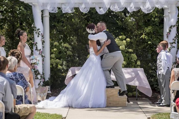 ▼身高206公分的「魔山」,娶了157公分高的女友。