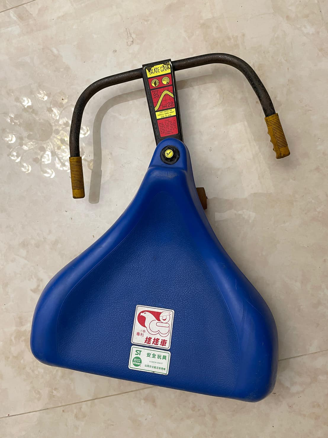 ▼這輛搖搖車一看就年代久遠,手把部分很有歲月的痕跡,生鏽的模樣清晰可見。這種搖搖車是給小朋友坐騎的玩具,只要左右搖晃把手就能加速,非常有趣。原po表示:「別騙我你們不認識這台!有玩過的舉手!」