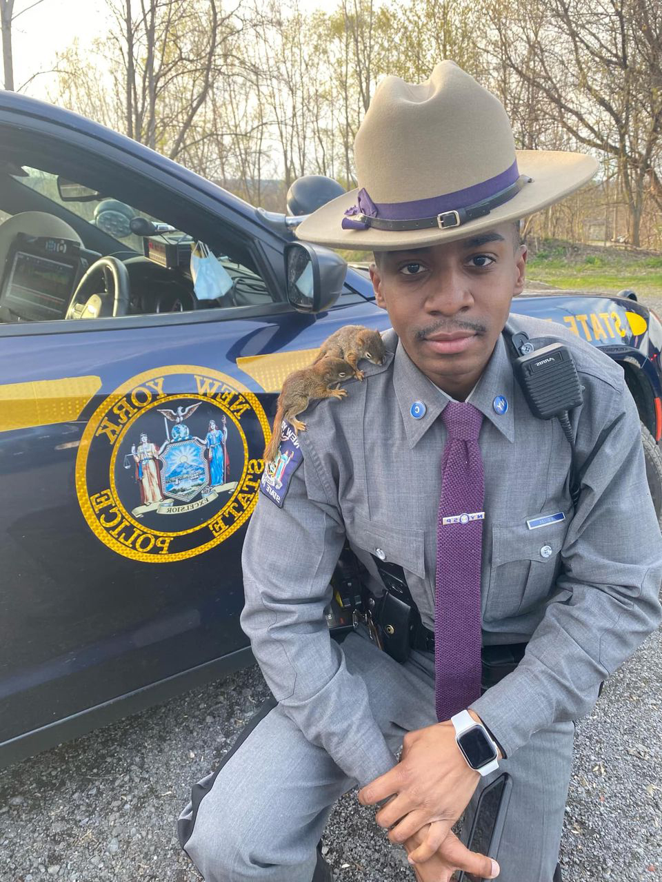 ▼警局在貼文中說:「Lee衝過去挽救了局面」、「看來他結交了一些新朋友。」警局還表示,保護一切生命和財產就是紐約州警察的核心價值觀之一。