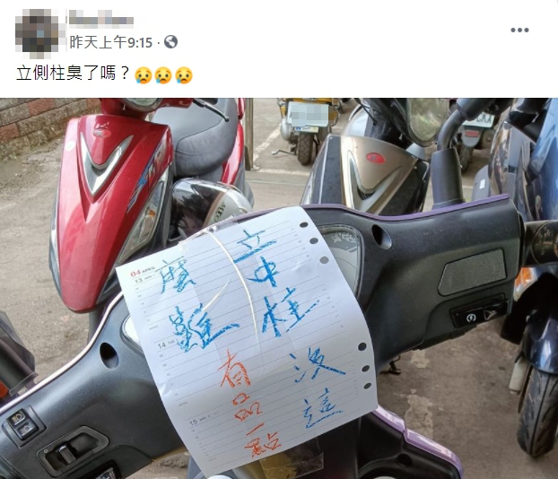 機車只立側柱!回來被貼紙條嗆聲 陌生人:立中柱沒這麼難!