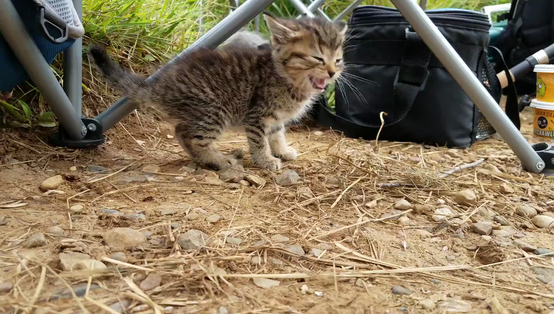 ▼小灰貓相當的積極,自己主動靠近和朋友釣魚的傑森兩人,兩隻小手伏在傑森的釣魚袋上,請求關注。過不久傑森發現了另一隻虎斑紋小貓咪,似乎是小灰貓的兄弟。他們在原地等待了一陣子後,發現始終沒有貓媽媽出現,而兩隻小貓咪也都表現得相當親人,似乎在求人類認養。