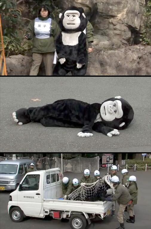 「動物逃脫處理演習」已經成為了這間動物園的傳統,每年都會舉行一次。動物們看到人類的演習,應該都滿頭問號吧。