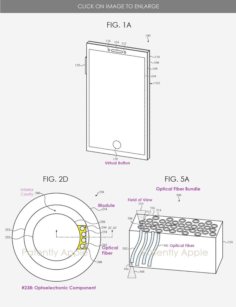 ▼其實安卓也有「螢幕下指紋解鎖技術」,但蘋果的這項專利是在螢幕下方嵌入「光纖型感測器」,運用光學原理,精準快速捕捉指紋數據。根據外媒「Patently Apple」的報導指出,蘋果在這項專利中,使用光纖將電磁輻射路徑至螢幕下方、部分下方或螢幕的光電組件之間,沿著螢幕邊緣到達透光組件的區域。