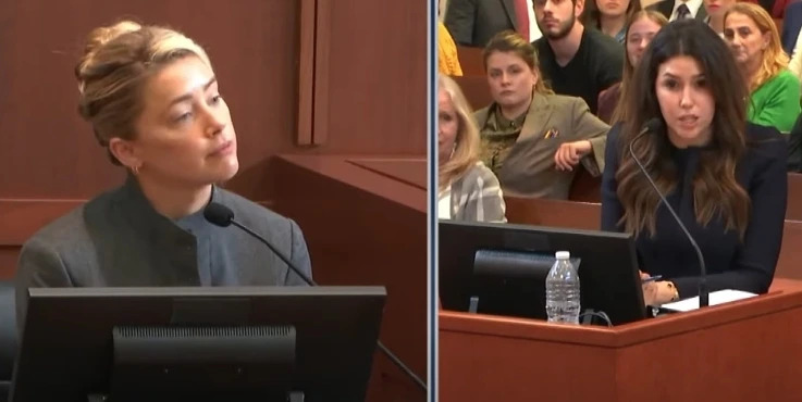 ▼本次開庭由安柏赫德坐上證人席,強尼戴普則在台下。強尼戴普的律師卡蜜兒瓦斯奎(Camille Vasquez)詢問安柏赫德:「這場官司裡,強尼有看過妳一眼嗎?」安柏赫德回答「沒有注意」。卡蜜兒接著說:「他沒有,因為他遵守承諾,妳再也不會看到他的眼睛了。」