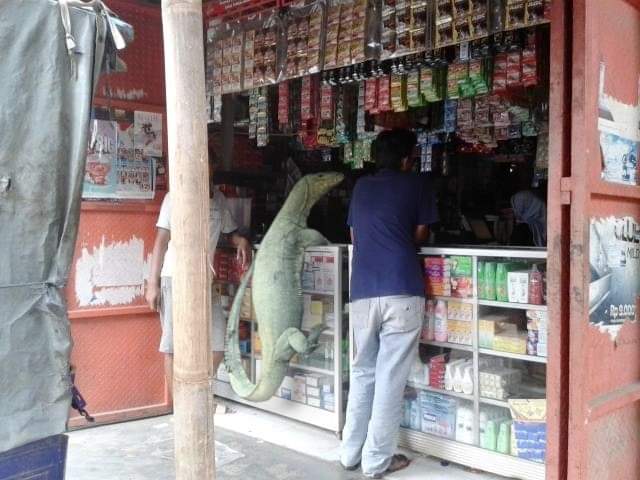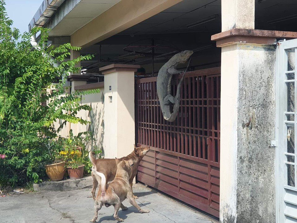 ▼網友@NovGunner在推特上發文,表示這一幕發生在馬來西亞柔佛州峇株巴轄縣,屋主回家的時候驚見門上竟有一隻巨型蜥蜴,看起來就像是一隻鱷魚。