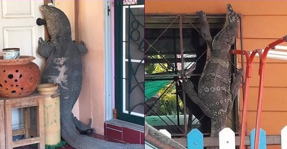 2022年05月19日國外有不少人將蜥蜴作為寵物飼養,但是如果回家的時候看到有一隻巨型蜥蜴趴在門上,一定會嚇到腿軟吧!先前一名日本網友在推特上分享了幾張巨型蜥蜴的照片,讓網友直呼超可怕!