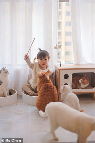 2022年05月23日貓咪跟小朋友的組合太可愛了~大陸河北石家莊市有一位陳小姐,她是2個小孩的媽媽,還收編了5隻貓咪、1隻狗狗。家中的毛孩、小孩都不少,但他們都相處融洽、和樂融融。陳小姐經常給孩子們拍照,紀錄他們的成長。尤其是5隻貓咪和2歲女兒「小希」相處時的可愛模樣,融化了不少人的心。