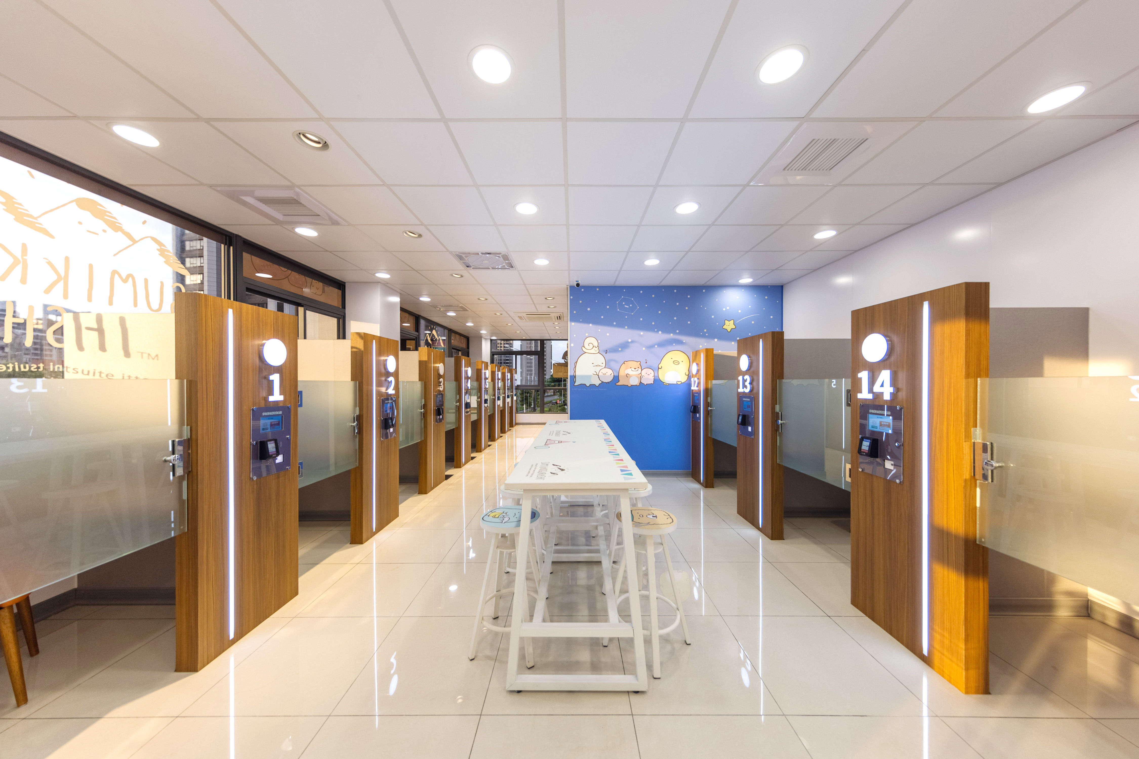 ▼消費者可於自助支付螢幕點選使用時數需求,採電子票證(icash 2.0、悠遊卡、後續加入一卡通)低接觸支付,個人包廂每小時100元、2人包廂每小時180元、4人包廂每小時300元,開幕初期體驗價5折優惠,同時只要掃取門市內的專屬QR CODE,即可進行線上行動隨時取的包廂時數購買,買越多越划算。