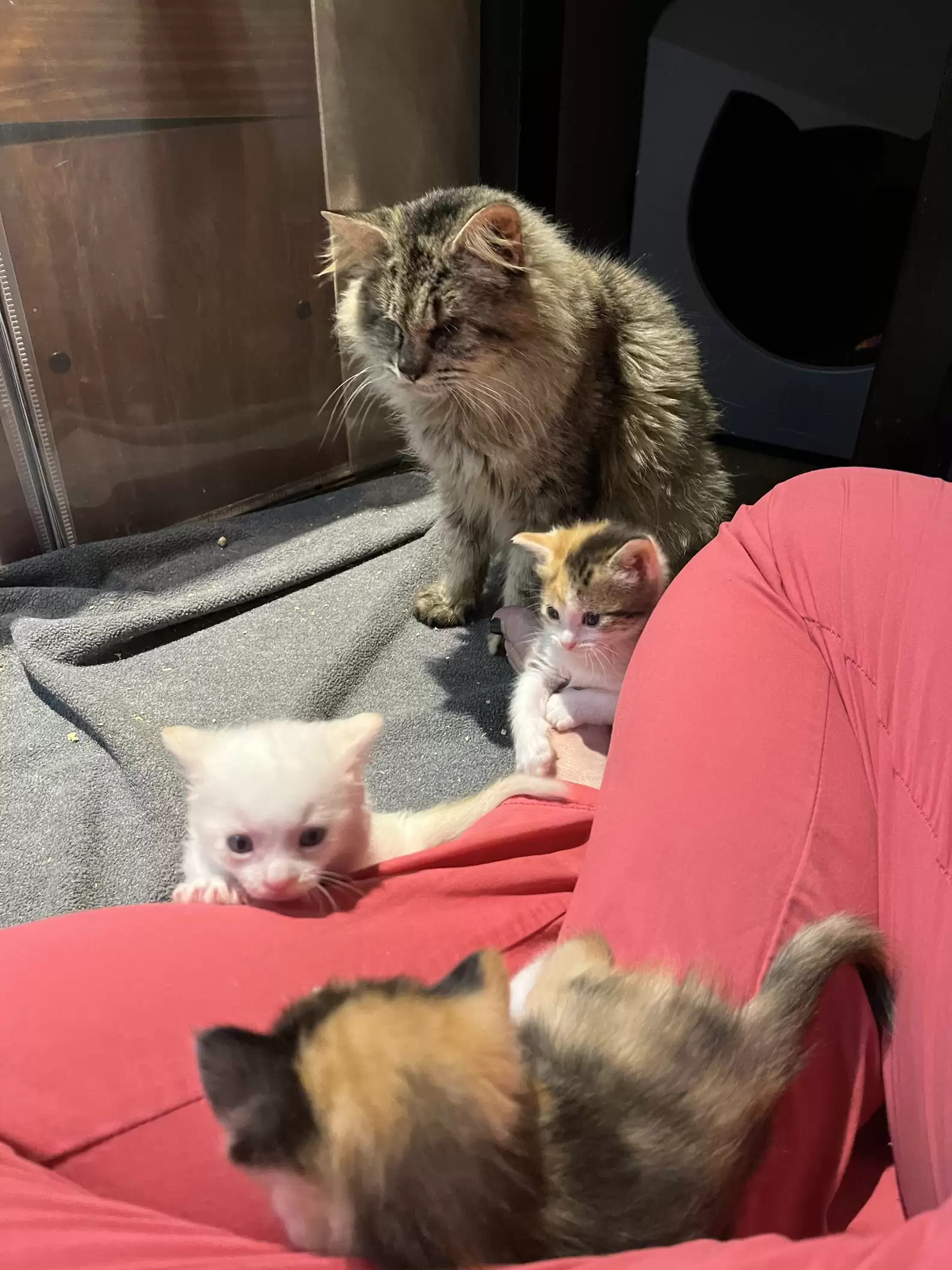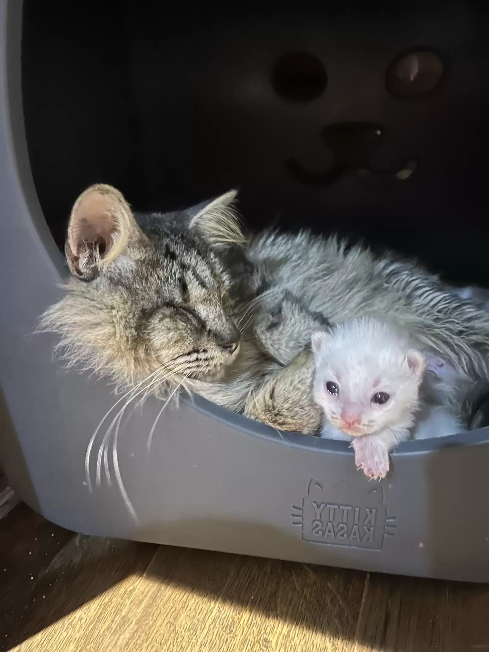 ▼Clue雖然看不見,但牠是一個偉大的媽媽。牠會盡己所能保護自己的小孩,每次獸醫給小貓稱重、上藥,牠都會陪在旁邊,密切關注小貓的情況。