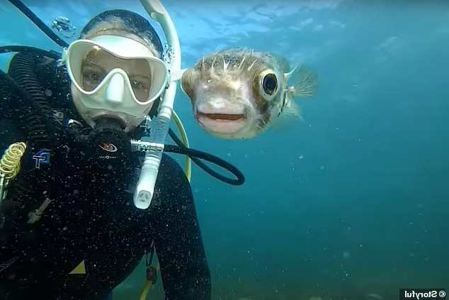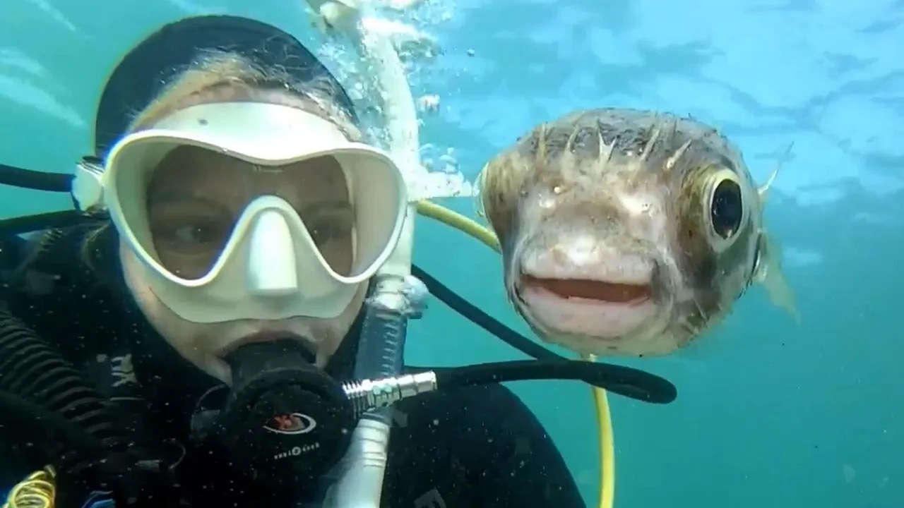 潛水遇到好奇寶寶河豚! 牠主動「湊鏡頭合影」還會找角度:偶準備好了喔~