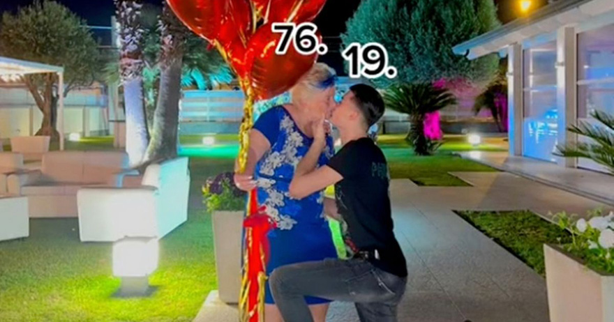 2022年05月30日相差57歲的祖孫戀!日前義大利19歲男孩Giuseppe D’Anna在網路上宣布,他向女友求婚成功,兩人即將步入婚姻的殿堂。Giuseppe還將浪漫的求婚過程拍下來po到TikTok上。不過他的女友並非跟他年齡相仿,而是一位76歲的老人。這一消息迅速引發熱議,大家都對這段奇特的戀情非常好奇。