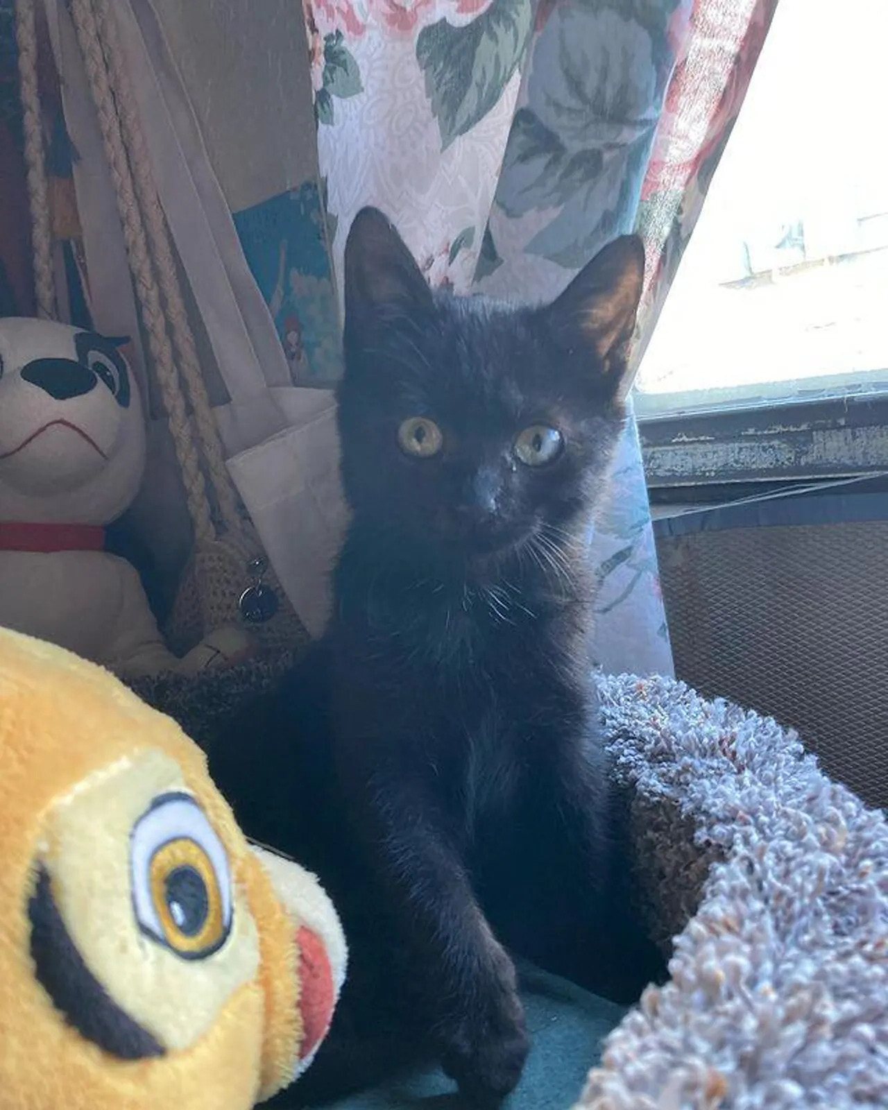 2022年06月01日長期飯票自己找~國外網友Precious Kimberly表示,有一天她發現一隻陌生的小黑貓坐在自家的車道上,牠看起來很可憐,不僅瘦骨嶙峋,眼睛還受到感染。Precious擔心貓咪的身體情況,決定暫時將牠帶回屋照顧,等牠恢復健康再找人送養,沒想到這隻小貓徹底改變了她的生活…