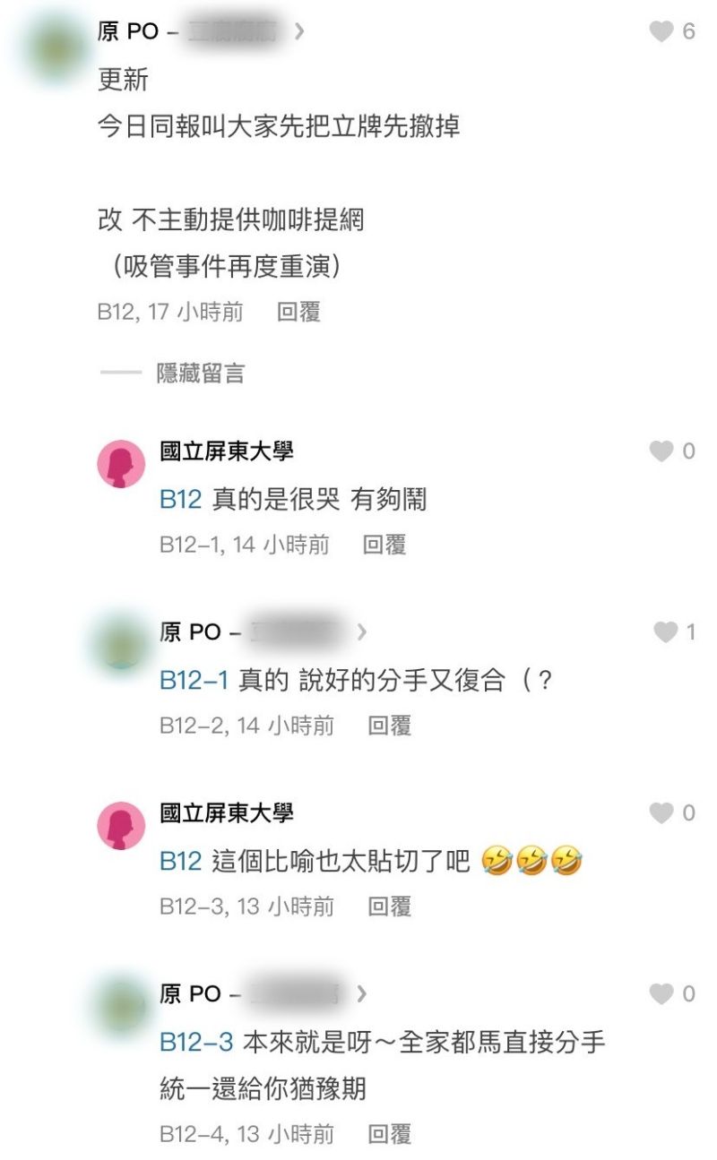 ▼還有7-11店員在Dcard上爆料說,原先打算不再提供免費的咖啡提網,改為全面收費的不織布提網,並通知門市6月1日開始立牌提醒,沒想到5月31日又緊急通知,「叫大家先把立牌撤掉,改不主動提供咖啡提網」。