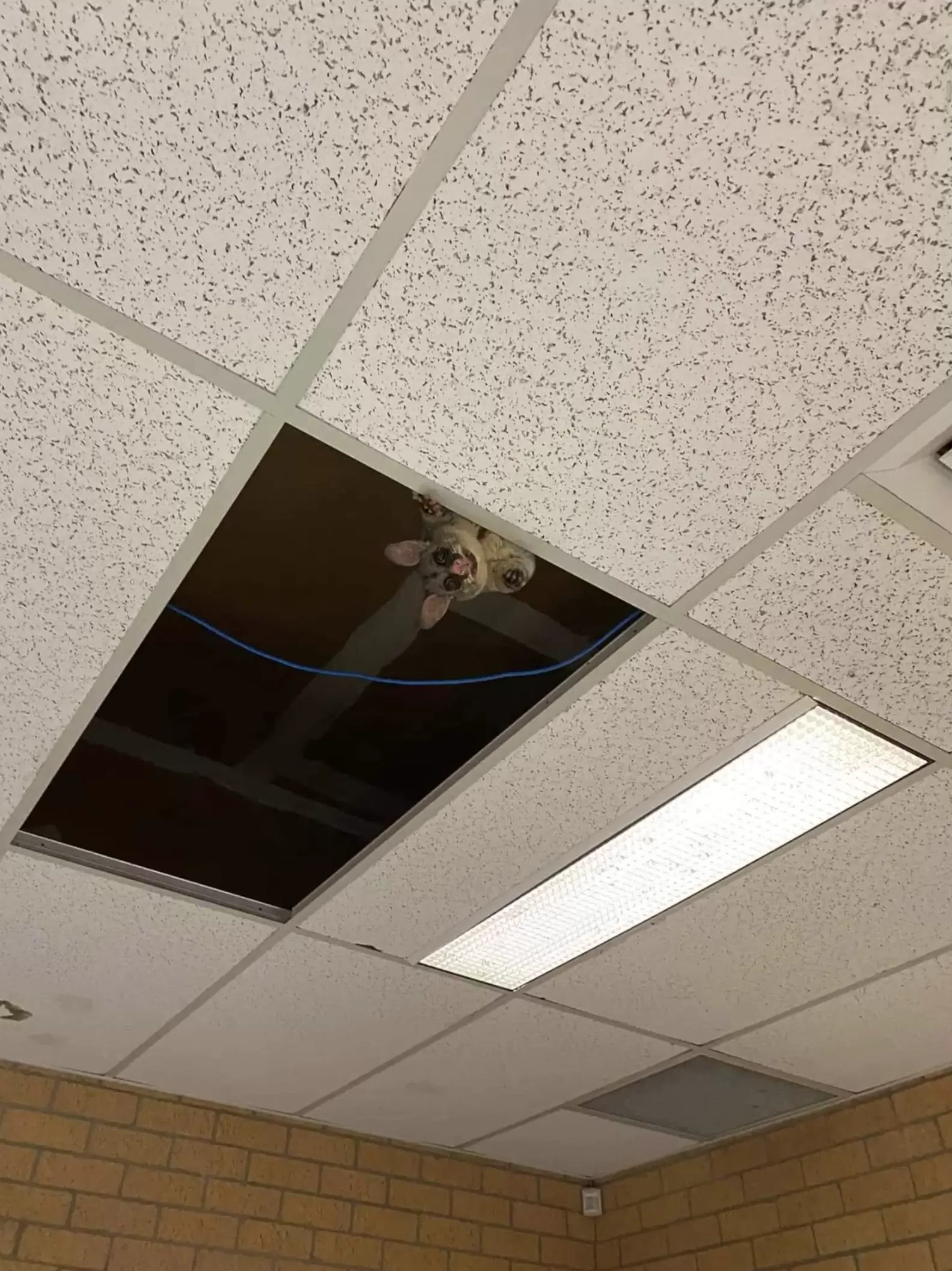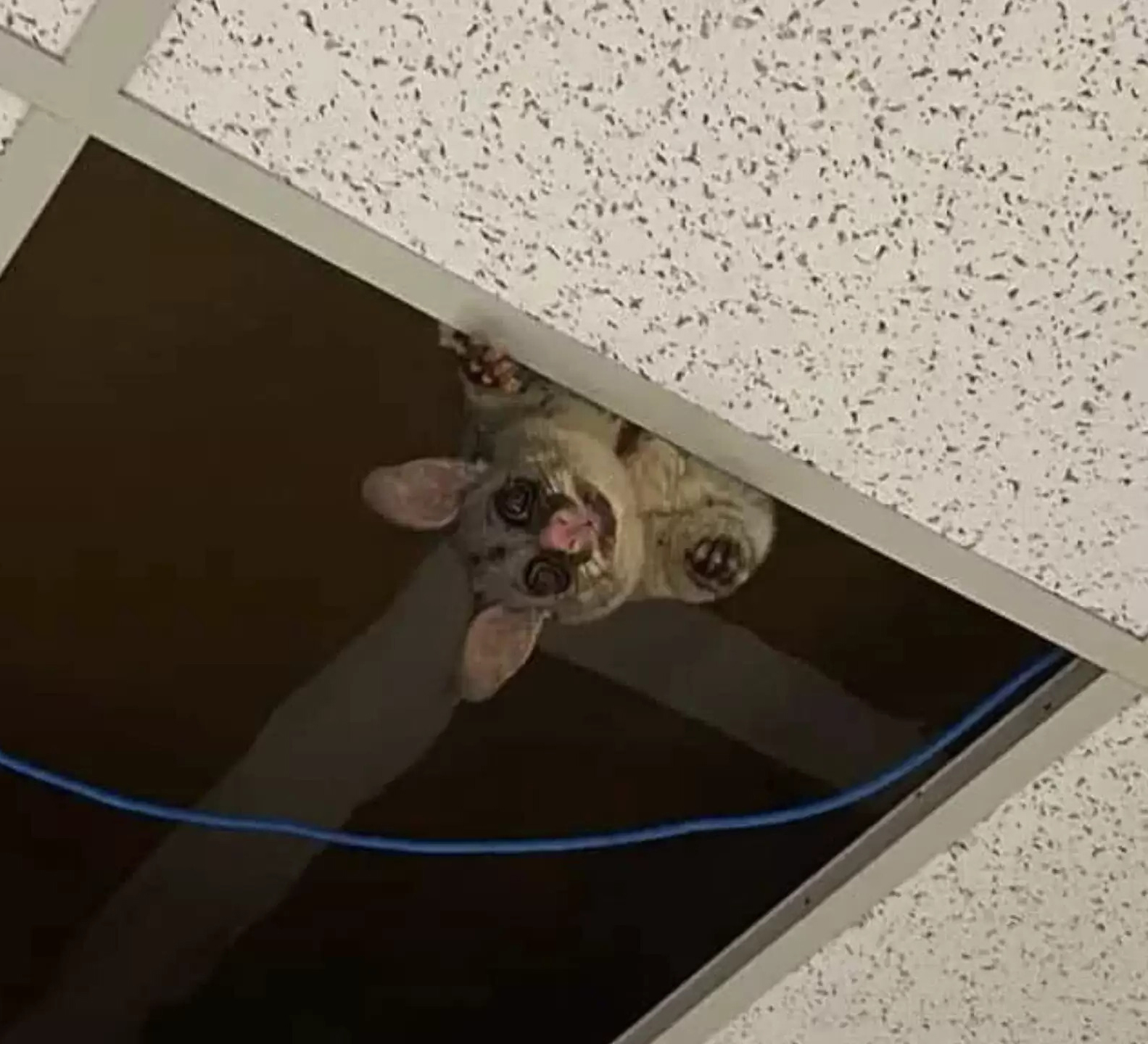 2024年02月06日日前澳洲紐卡索大學(University of Newcastle)的一名學生在上課時,突然聽到天花板傳來窸窸窣窣的聲音。她抬頭一看,天花板的空洞竟出現一雙圓滾滾的大眼睛!原來這是一隻刷尾負鼠(brush-tailed possums),這隻可愛的小動物不知怎樣跑到了教室裡,正躲在天花板監視學生們上課~
