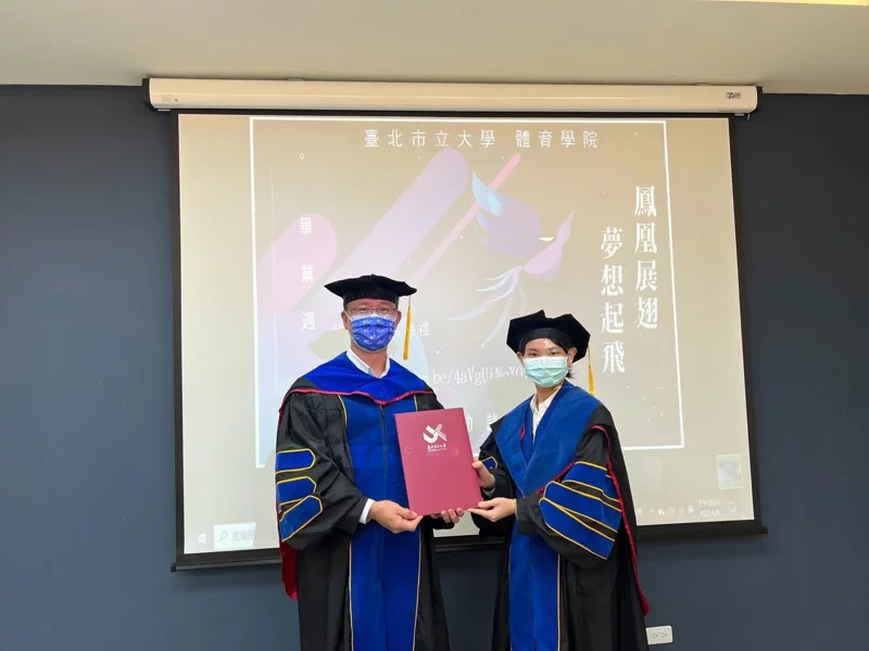 ▼戴資穎說:「我要謝謝在學術這一條路幫助我的人,謝謝體育署、謝謝北市大,從大學、碩士班到博士班,謝謝現在的邱英浩校長、還有戴遐齡校長,以及競技運動訓練研究所陳奕良所長,也就是我碩士與博士的指導教授。特別感謝陳老師總是願意配合我的時間,我不論在國外比賽或者國內訓練的時候,都可以持續學習。」