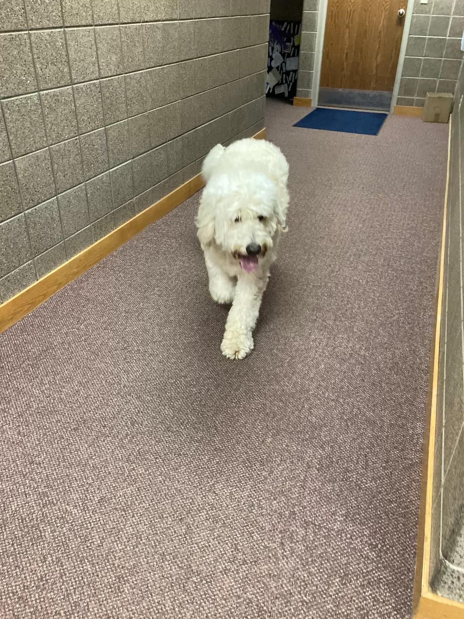 ▼這隻大白狗叫Tate,牠被帶回警局安置後一點也不緊張,還興奮地到處探索。