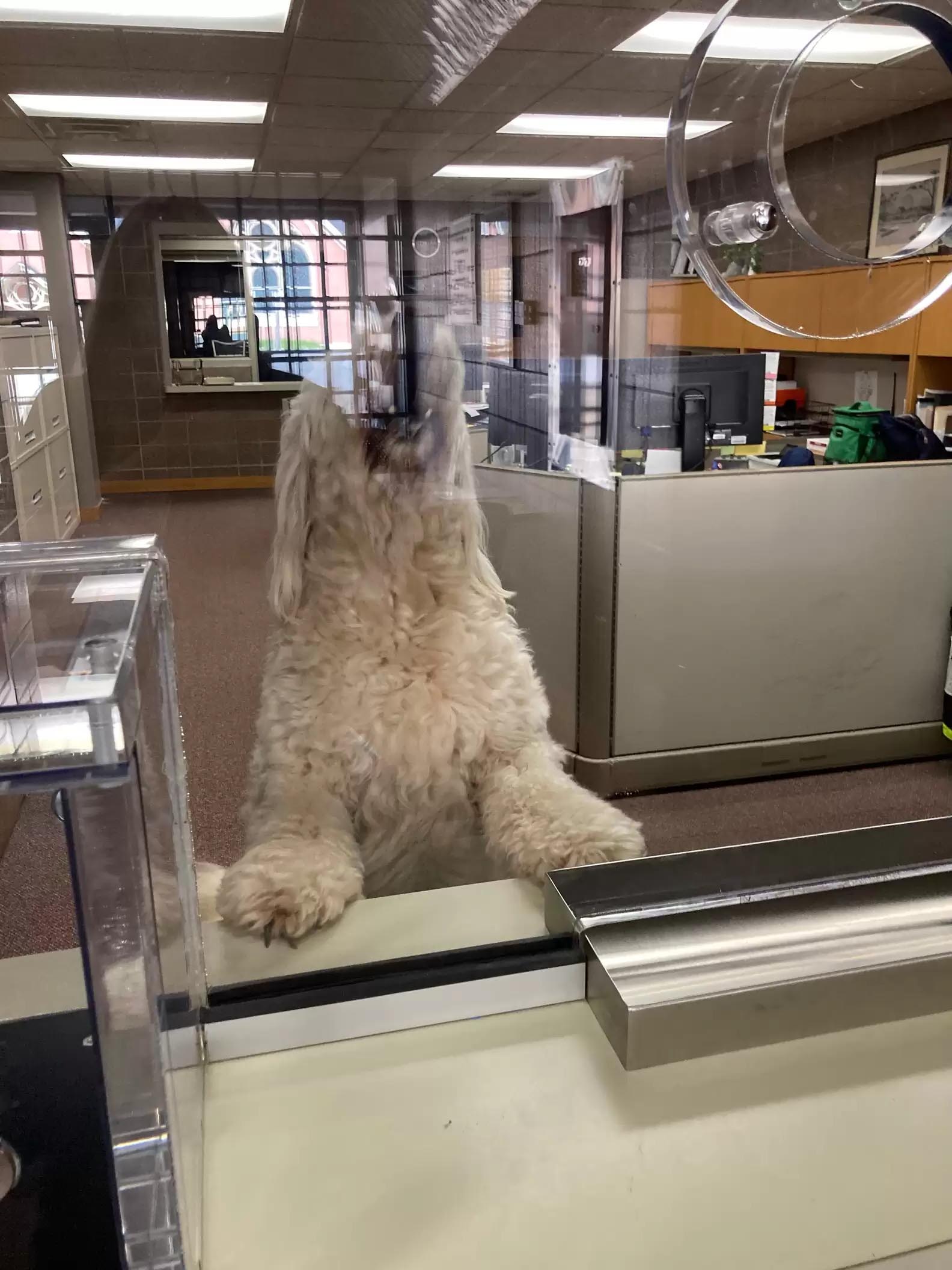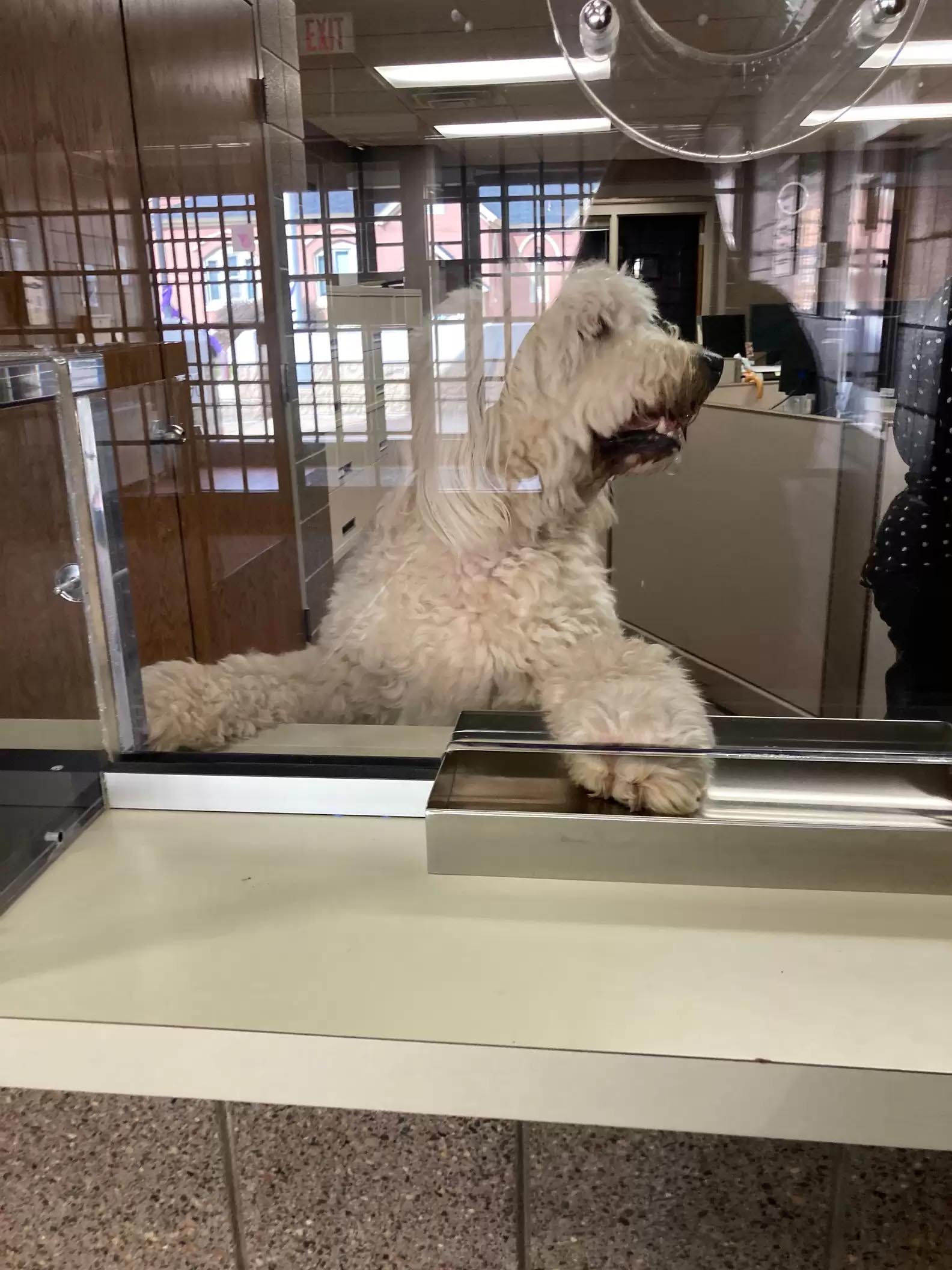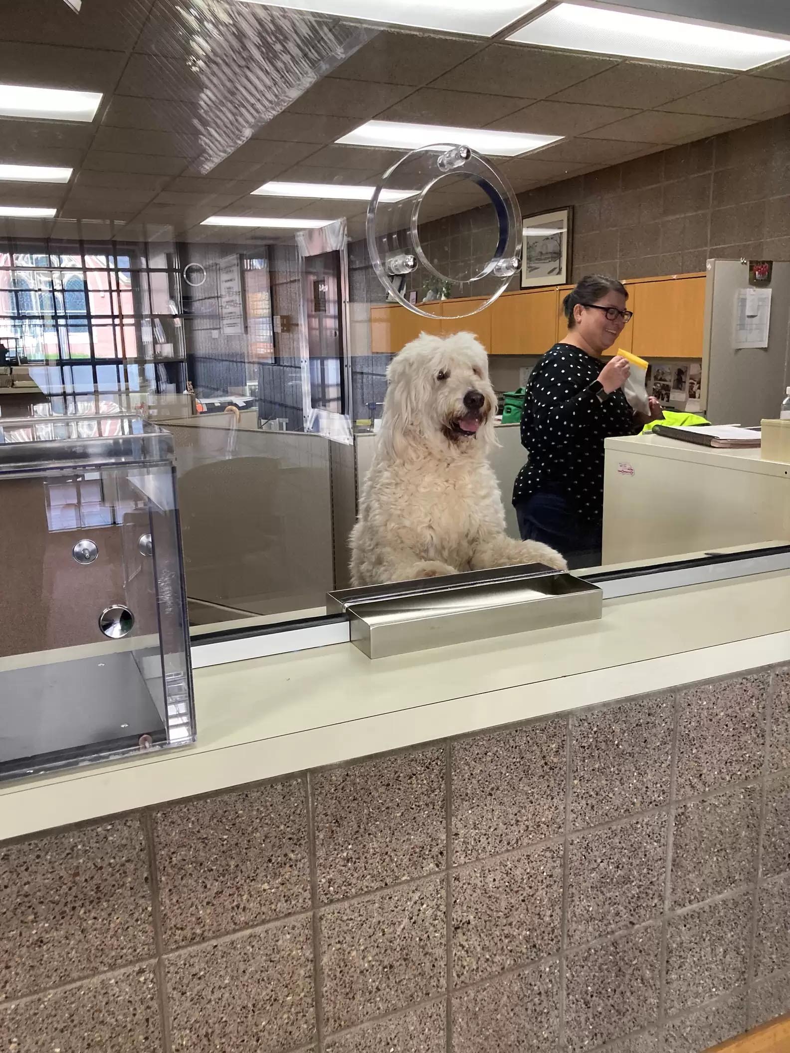 大白汪走失送警局! 竟自己找到工作「跳窗口接待」:有什麼需要嗎~