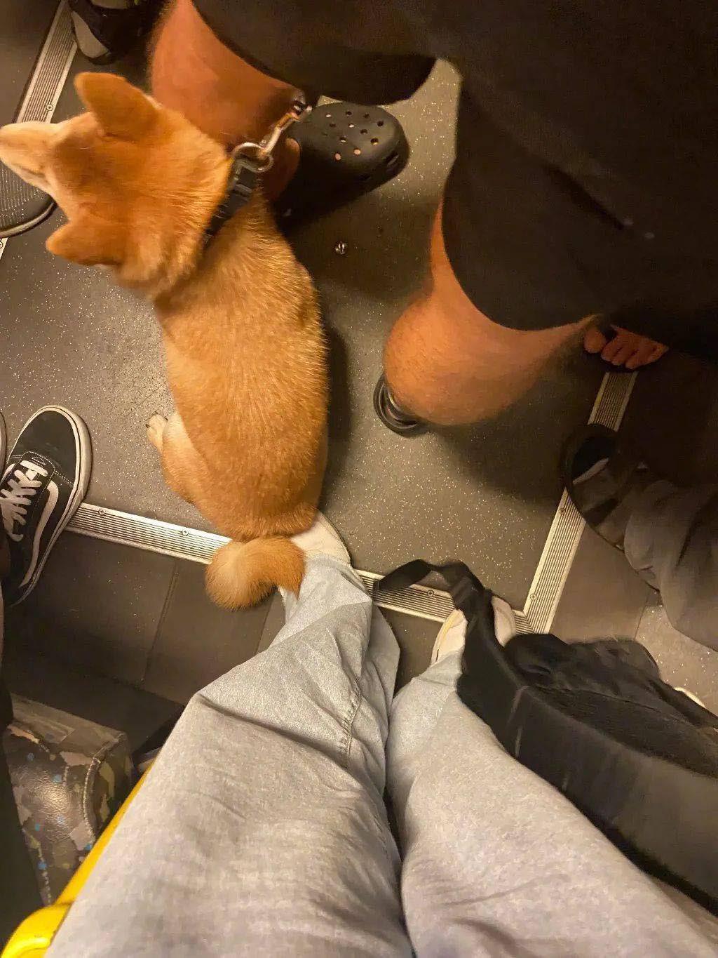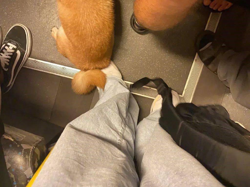 ▼原po表示,他搭車時突然感覺腳背被壓到,正想說到底是誰踩了自己一腳,竟然不移開,結果低頭一看,居然是一隻可愛的汪汪將屁屁放到了自己的腳上。