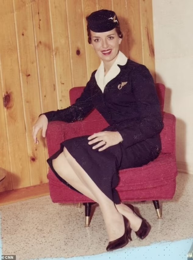 ▼Bette來自維吉尼亞州,1957年時進入東方航空(Eastern Airlines)擔任空姐,主要的工作是推飲料車、給乘客提供安全指導。她介紹說,當時的機票價格非常便宜,只需12美元,而且是手寫的,時間表還寫在黑板上。