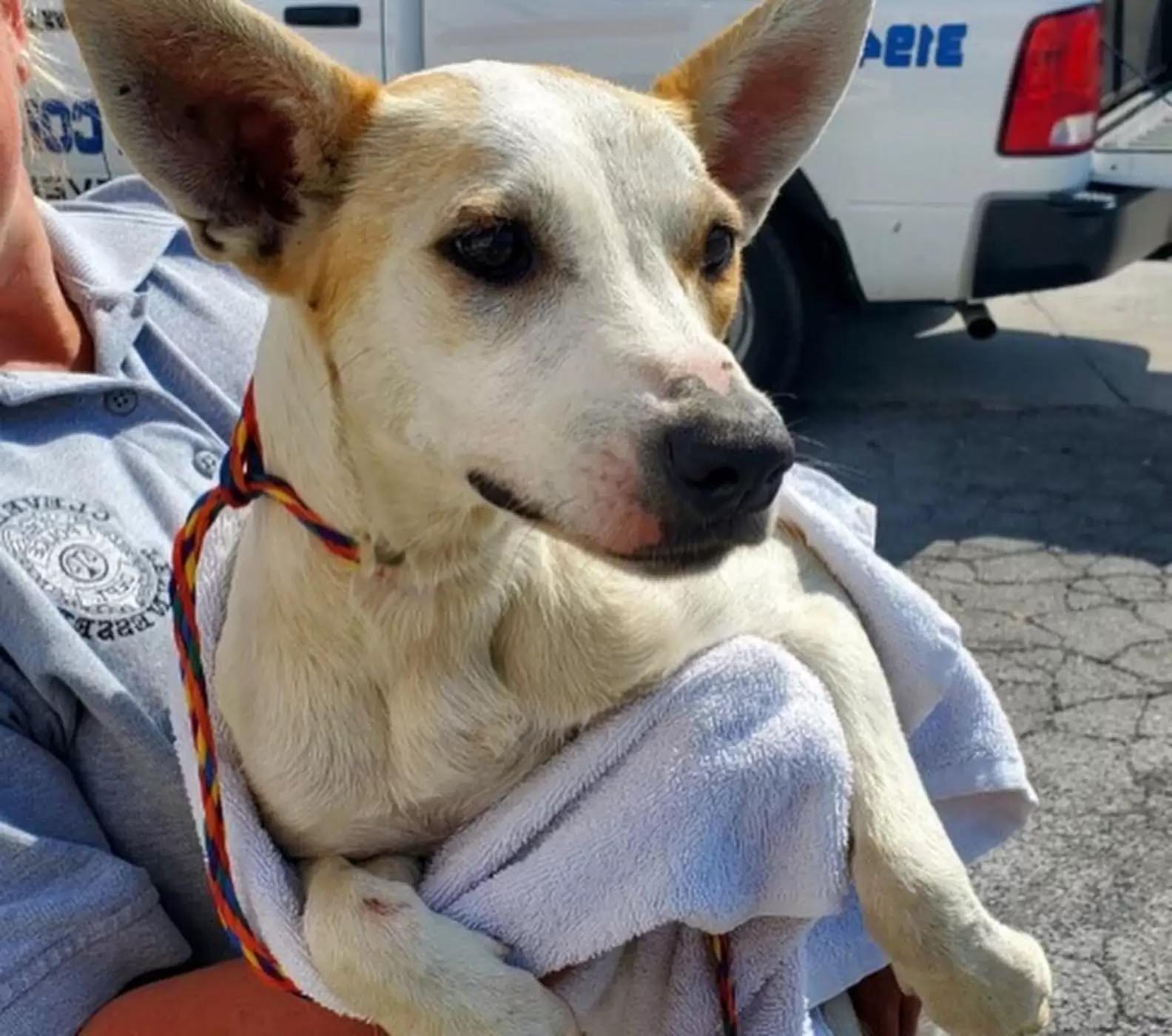 ▼狗狗逐漸意識到面前的員警是來幫助自己的,於是漸漸放下戒心。牠不僅對著員警發出歡快的叫聲,員警將牠抱起來時牠也沒有反抗。