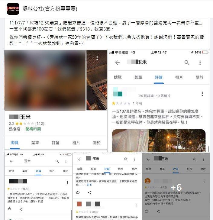 ▼這名網友在臉書社團「爆料公社」發文說,她7日在中壢夜市一間烤玉米攤買了3支烤玉米,但店家沒有事先稱重,而是刷完一層厚厚醬汁、烤完後才秤重。原po結帳時才被告知共要價318元,她對此非常不滿,認為店家應該計算玉米的淨重,並直言未來不會再到該玉米攤消費。