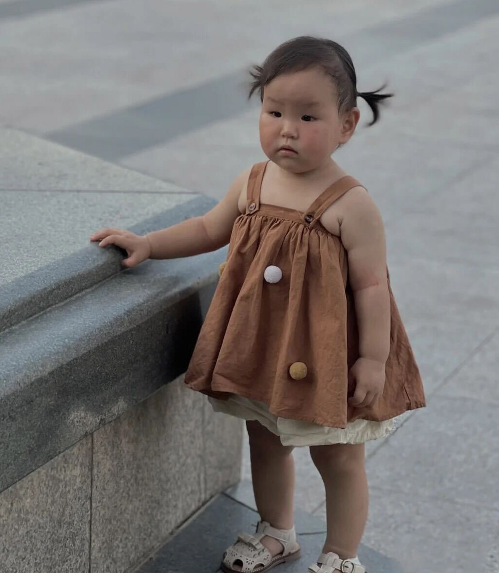 ▼這對父母會給女兒準備不同款式、花樣的包屁衣、小裙子和長筒襪,搭配寶寶軟軟胖胖的小腳丫,竟然非常好看!一般的寶寶照都會把重點放在胖乎乎的小臉上,沒想到寶寶肉嘟嘟的腳腳也這麼可愛。