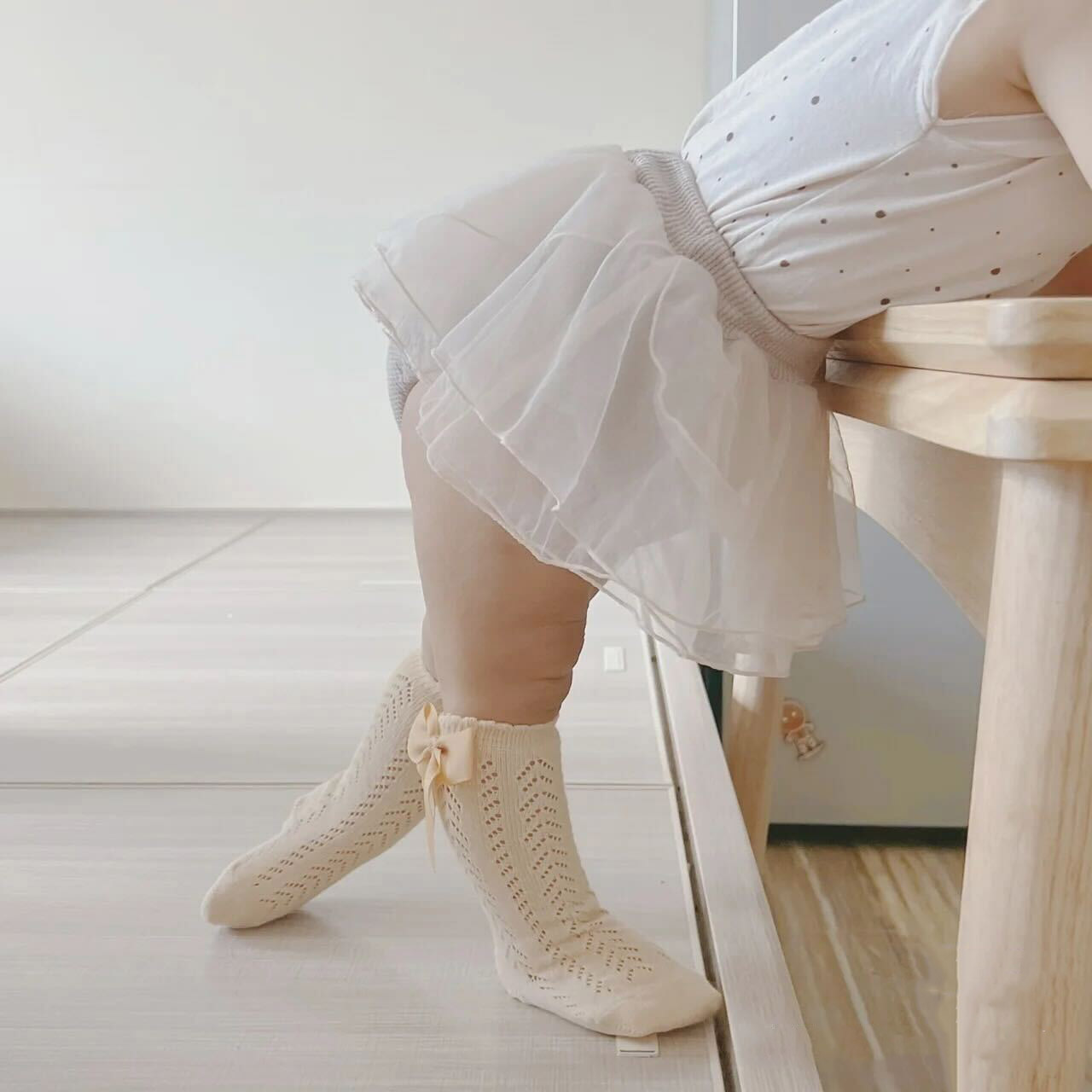 ▼寶寶的腿、腳都胖胖的、圓圓的,穿上蕾絲襪襪優雅又可愛。