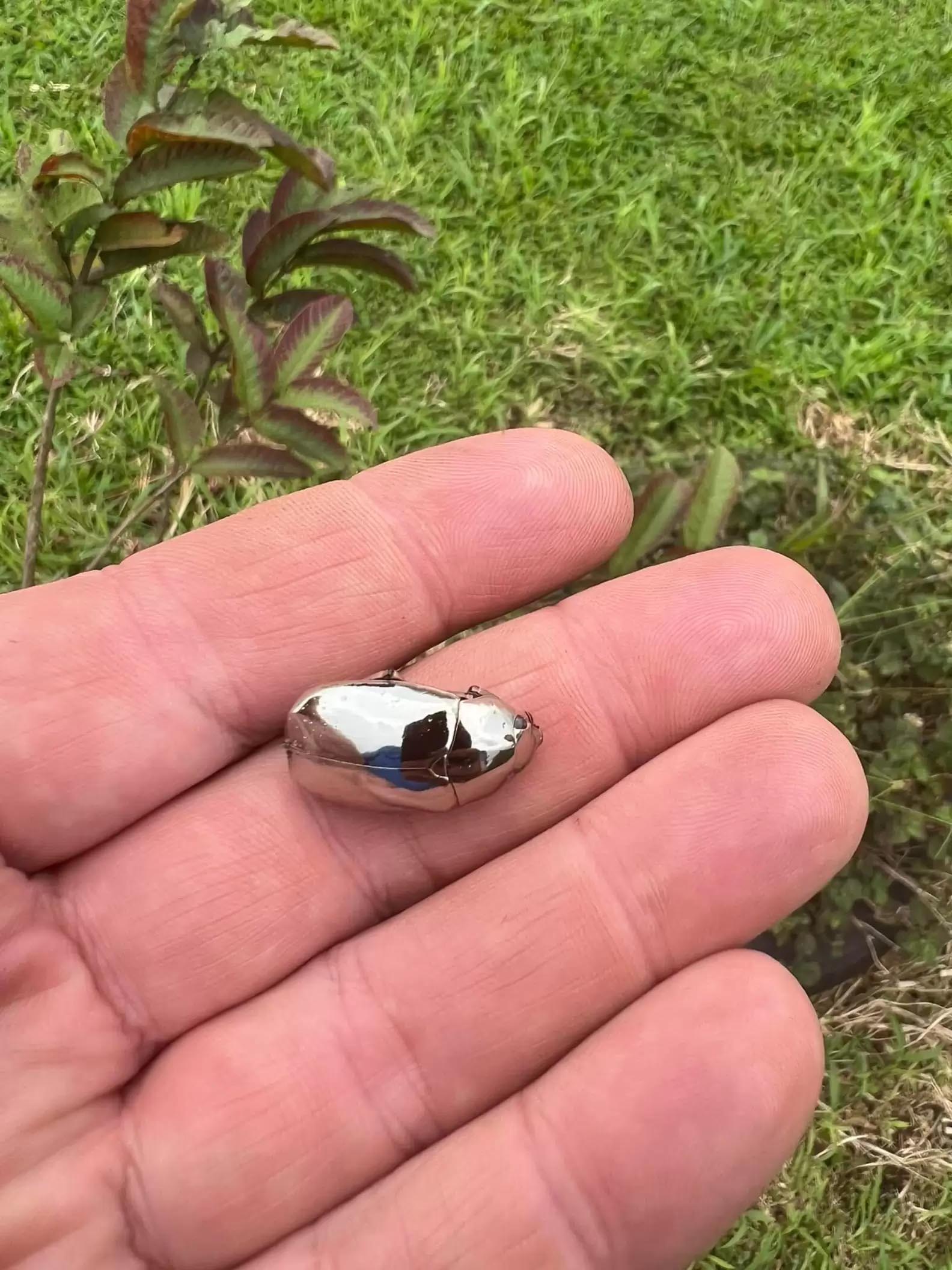 ▼後來Michael才知道,這種甲蟲叫「Chrysina limbata」,主要棲息在哥斯大黎加、墨西哥和南美熱帶雨林中,因金屬一般的銀色外殼而出名。專家表示,這種甲蟲的外骨骼組成沒有什麼特別,甚至和蟑螂的一樣,只是翅鞘的結構讓反射的光線產生金屬效果,所以看起來才那麼獨特。