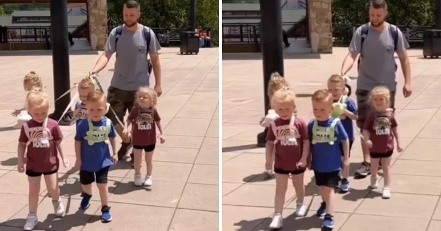 把小孩當狗?爸帶5胞胎出門「用牽繩」竟挨罵 網戰翻:明明很好用
