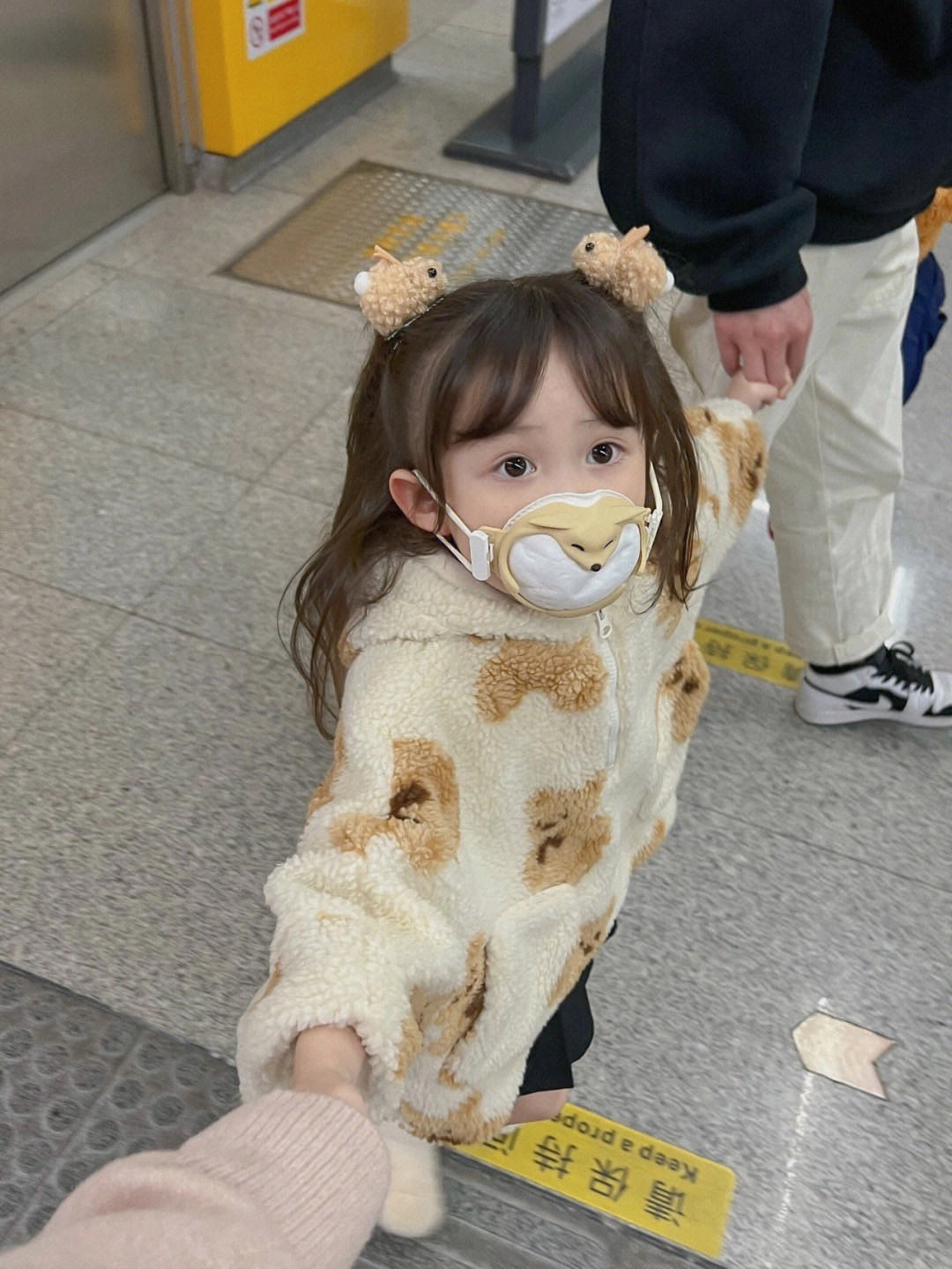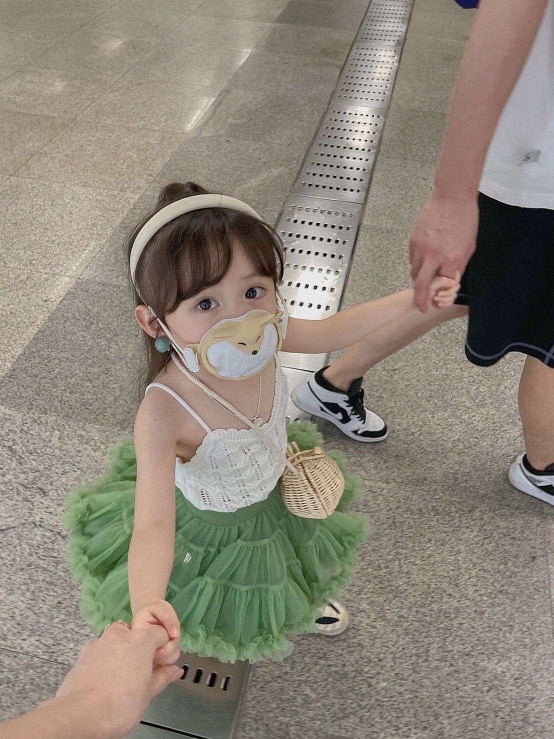 ▼拿下口罩的她果然美美的!大眼睛非常無辜,還有櫻桃小嘴,小巧可愛的五官根本是真人版洋娃娃,長大後一定會是大美女!