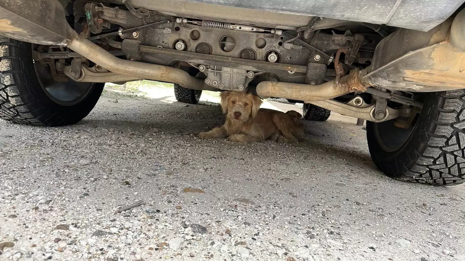 ▼浪浪非常謹慎,看到救援人員接近,就帶著狗寶寶們躲到車子下方不願出來,最後在救援人員的耐心安撫下,才成功將牠們誘捕。