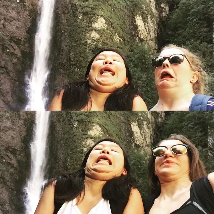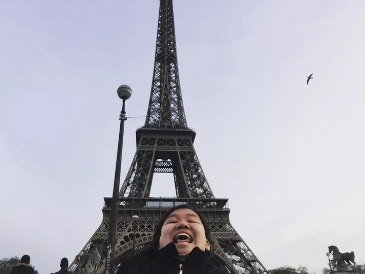 ▼Michelle拍照時不去喬姿勢,而是挑戰獨特的視角,拍出雙下巴照。這些照片中沒有高顏值、好身材、不真實的浪漫場景,只有最真實的景點地標,還有她的笑臉和雙下巴。打開她的社群頁面,能看到一張又一張雙下巴旅遊照,可愛又有趣。