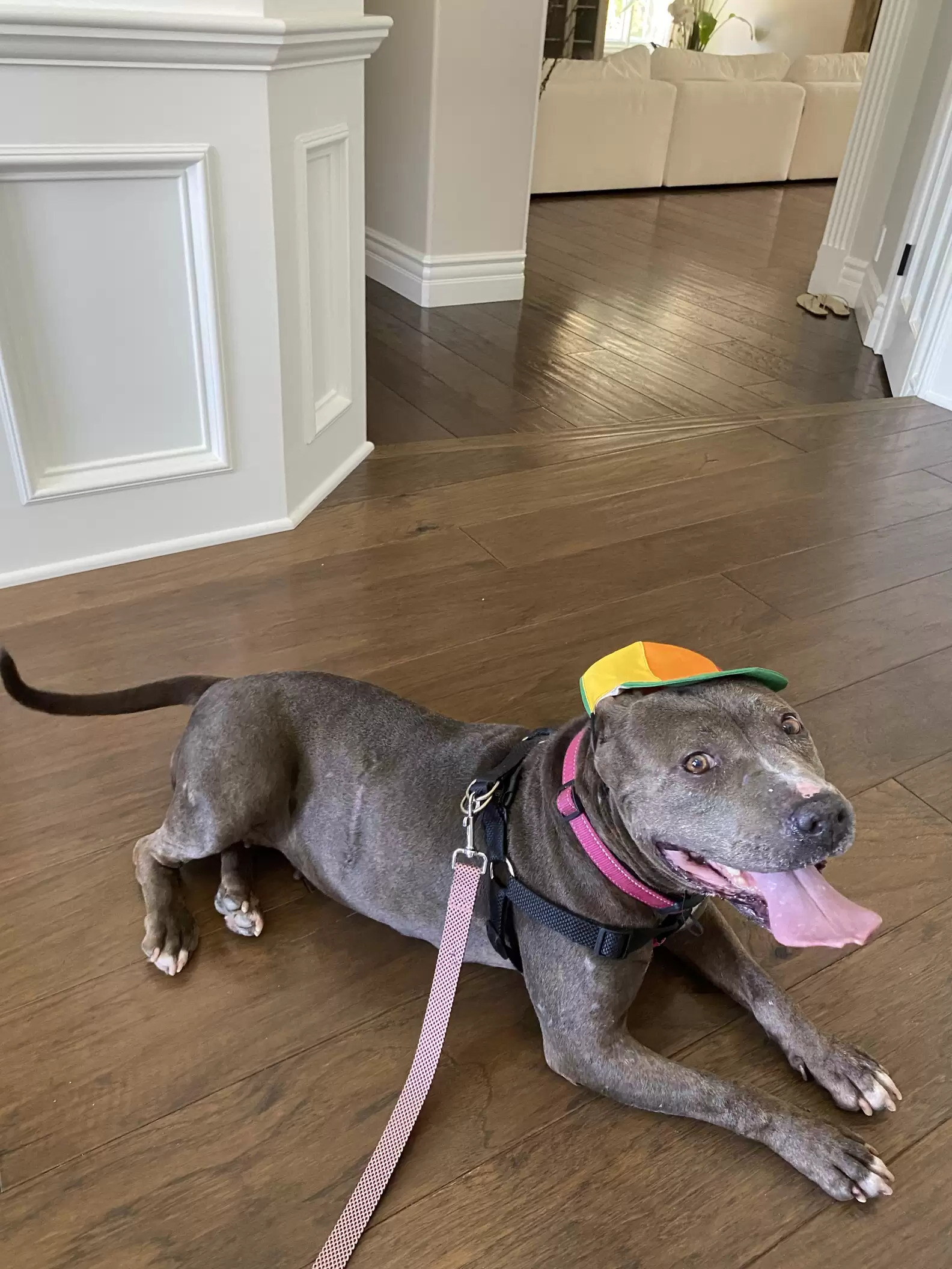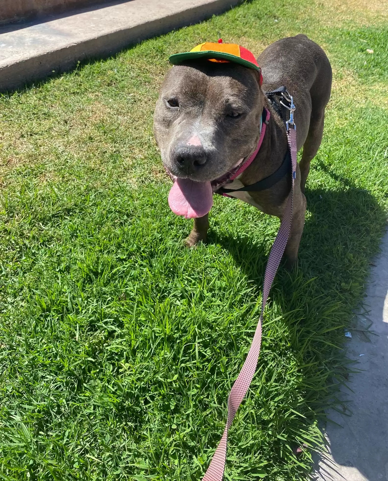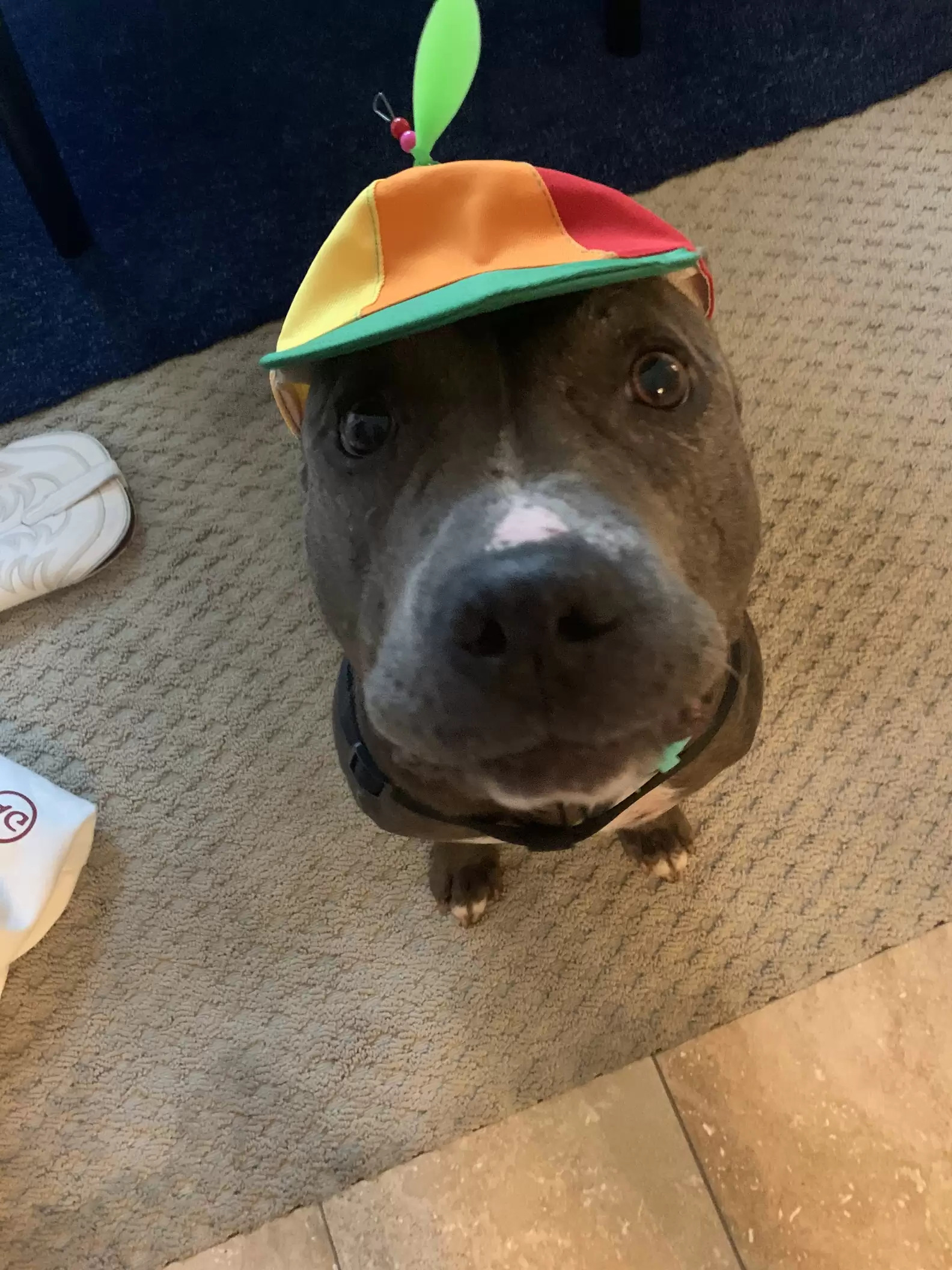 比特犬「長太兇」路人看到繞道! 愛媽幫戴「旋轉帽帽」牠呆萌問:這樣有沒有可愛一點~