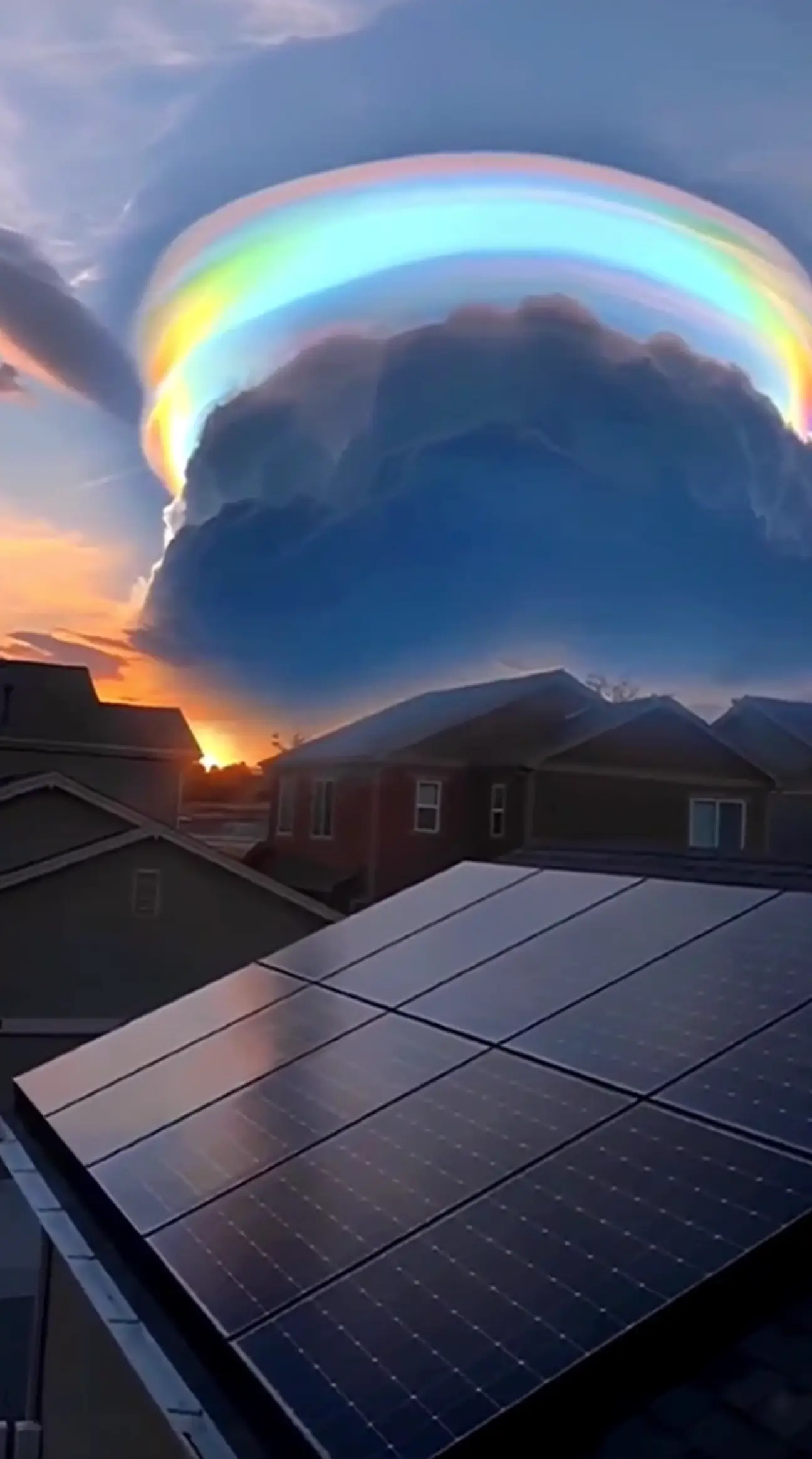 ▼8月21日下午,海南省海口、澄邁、臨高等地的不少網友拍到了天空中的彩色雲朵。這種現象被稱為「彩虹襆狀雲」。「彩虹」是陽光照射到半空中的水滴,光線被折射、反射,在天空中形成拱形的七彩光譜。而「襆狀雲」往往出現在濃積雲的頂部,就像一頂帽子,「襆」是中國古代男子用的一種頭巾。
