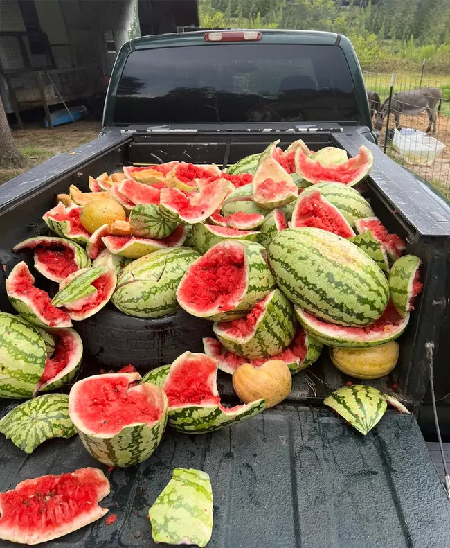 2022年09月08日無盡其中!日前美國路易斯安那州法默維爾(Farmerville)的野生動物康復中心「River Bandit Rescue」收到很多西瓜。雖然這些西瓜都「破相」,但小動物們並不在乎,都很開心得大快朵頤。這些西瓜是一位慷慨人士免費捐贈的,背後有一個很特別的故事!