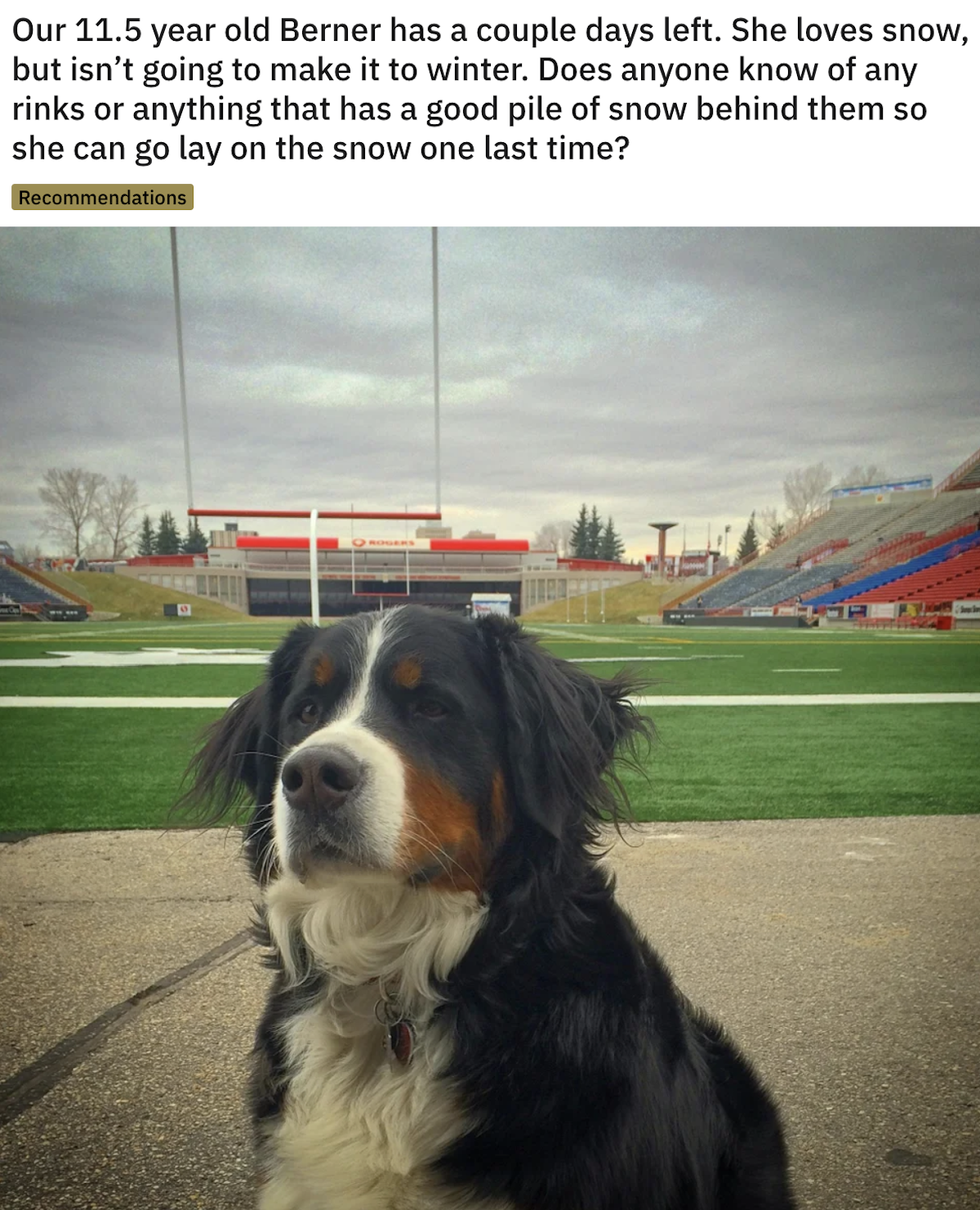 2022年09月14日加拿大有一隻可愛的狗狗Brooke,過去10多年來,牠一直被家人照顧得非常好。最近Brooke變得很虛弱,獸醫判斷牠的生命很快就要走到盡頭。家人為了讓牠快樂回汪星,在Reddit上發文求助。後續的發展超暖心,感動了無數人!