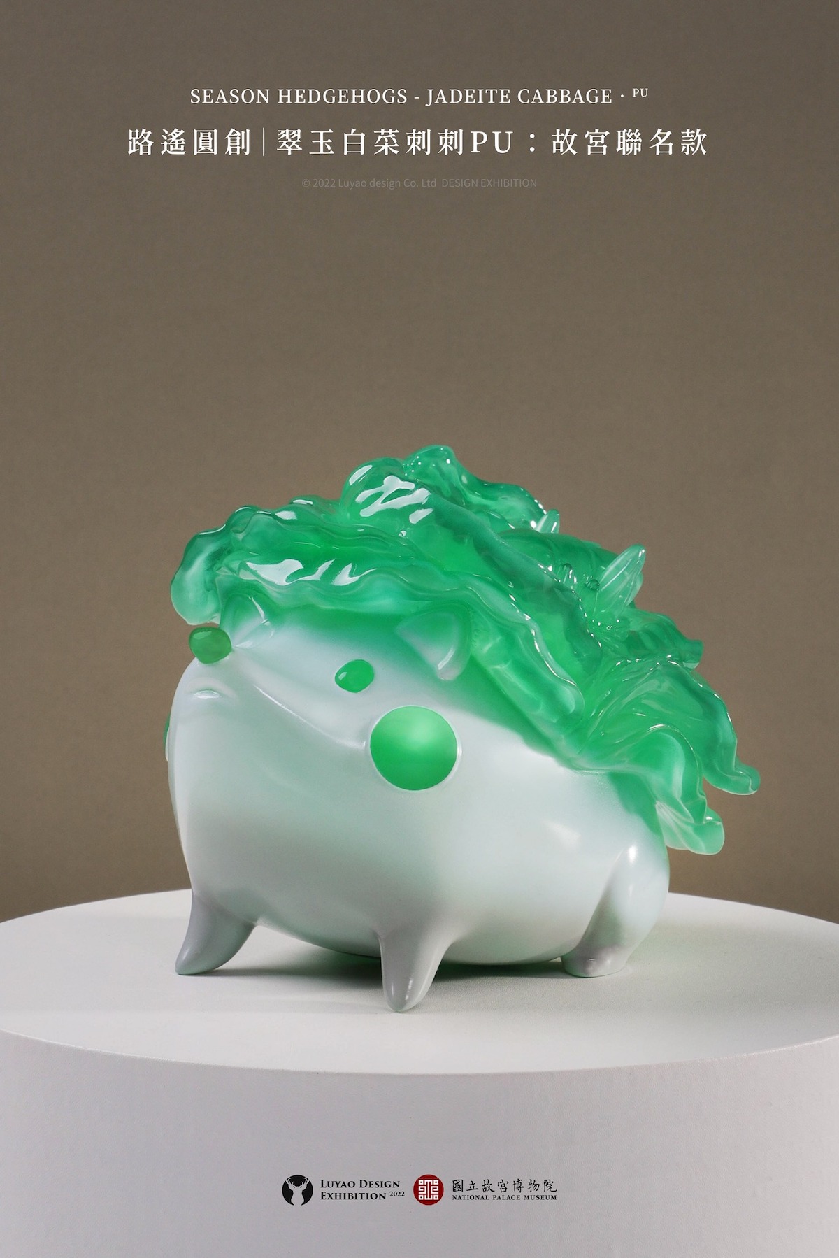 ▼「翠玉白菜刺刺PU」是由翠玉白菜的配色與樣子發想,白綠色系做出白菜的紋路與光澤,一眼看去還以為是故宮館內的文物!仔細看看,還能看到經典的「螽斯」,令人歎為觀止。