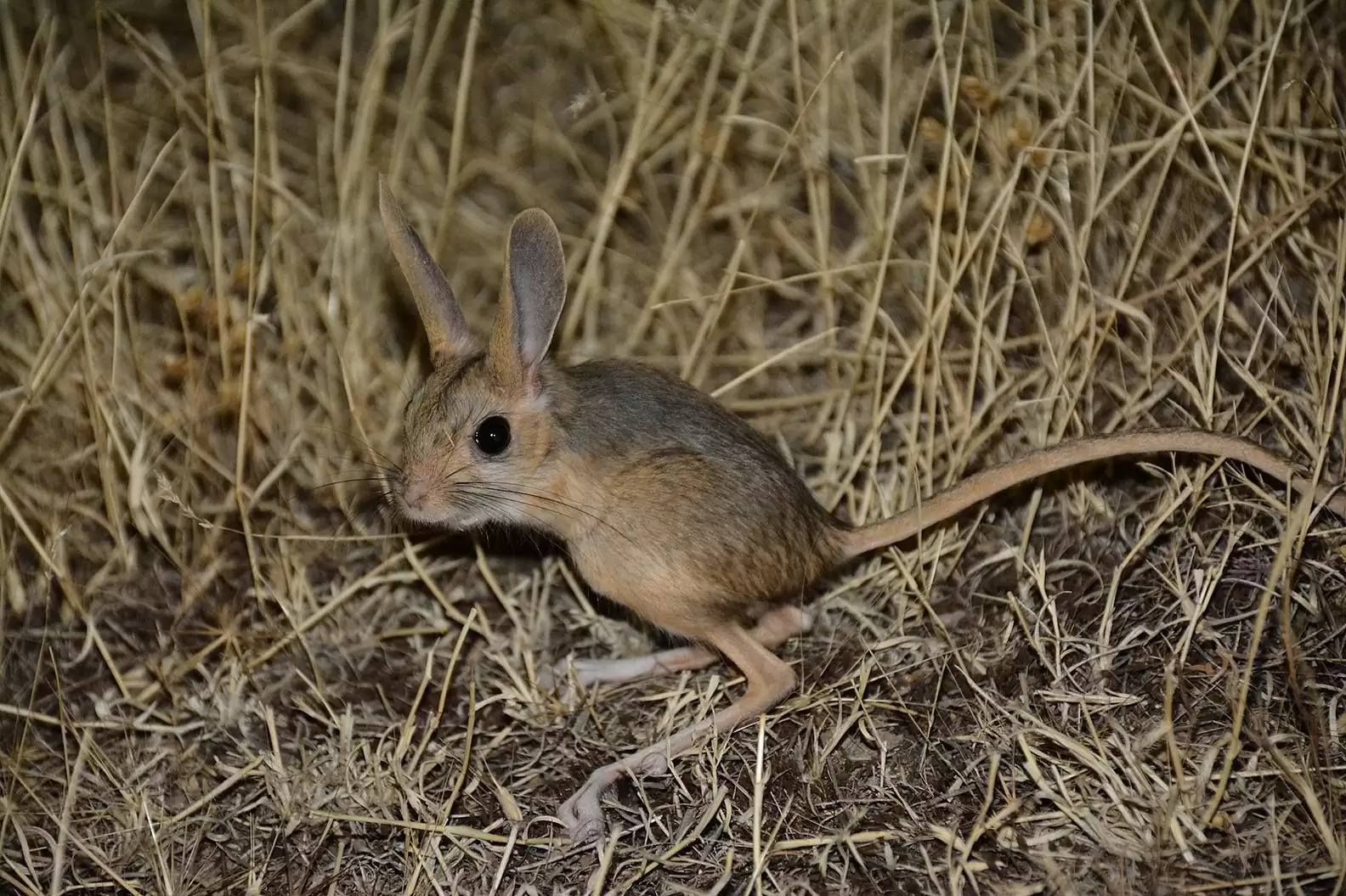 ▼跳鼠主要生活在亞洲和北非的乾旱地區。牠們主要在夜間活動,以植物、種子和小昆蟲為食。牠們的後腿又長又強壯,一步可以跳2到3公尺遠。跳鼠的尾巴也很長,有助於牠們在半空中保持平衡,同時還能改變前進方向。跳鼠還有大大的耳朵,因為牠們生活在乾旱地區,大耳朵有利於散熱。