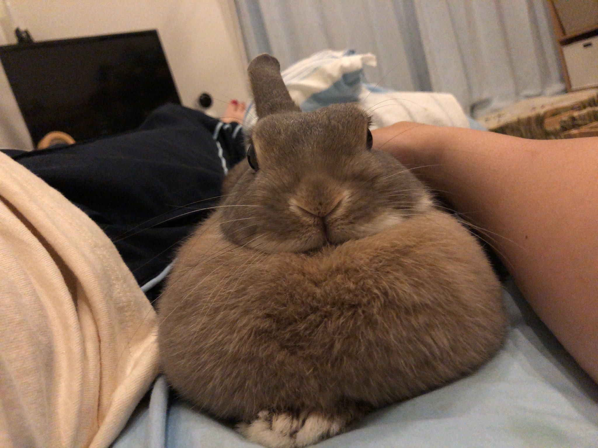 ▼杏子非常乖巧,飼主睡著之後,牠繼續縮成一小團,一動也不懂,似乎擔心會驚醒主人。等飼主醒來,杏子已經被「扁掉」了。有人擔心杏子會受傷,飼主解釋說,雖然自己是不小心壓住了兔兔,但牠如果真的不舒服、不喜歡的話是可以逃開的,大家不用擔心。
